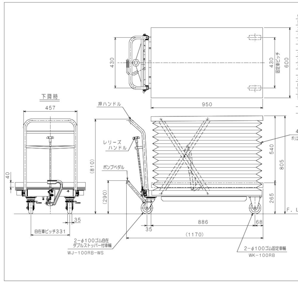 操作は基本的には足踏みでポンプを介して油圧シリンダーを作動させ、テーブルを上昇させます。