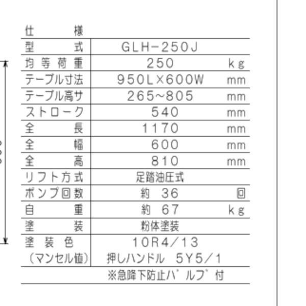 積載荷重 250kg