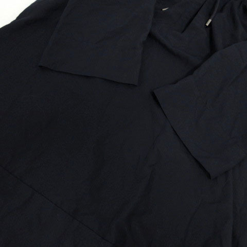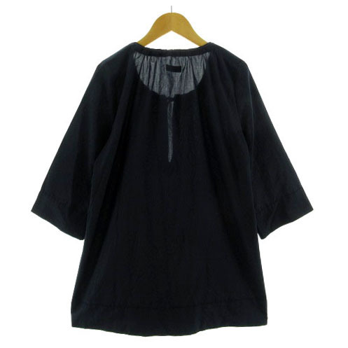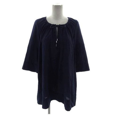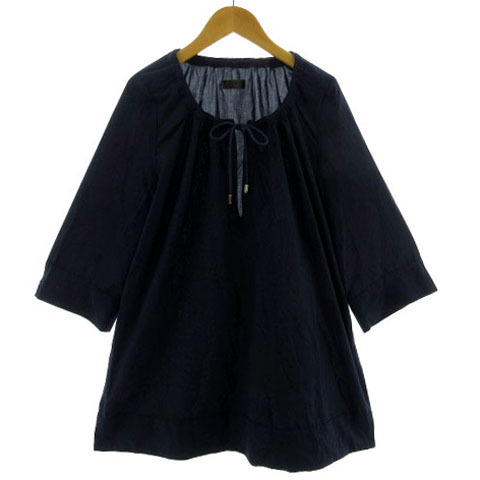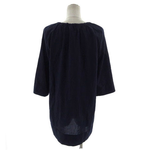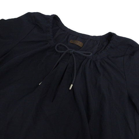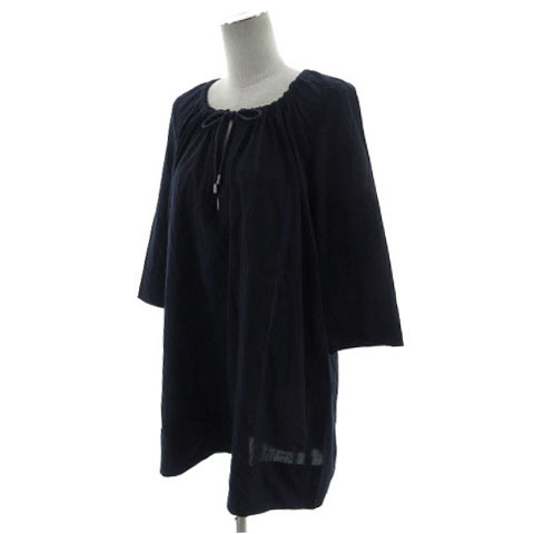 プロフィール PROFILE カットソー チュニック丈 スリットネック ドローコード 七分袖 日本製 ネイビー 紺 38 レディース