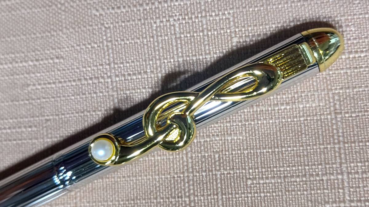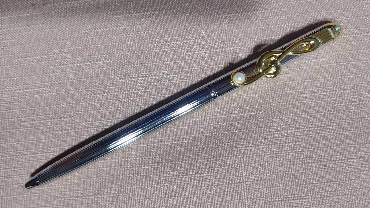 H ミキモト 音楽モチーフ ボールペン ト音記号 筆記確認残不明 予備の新品リフィル(SK-8)付き ケース入り