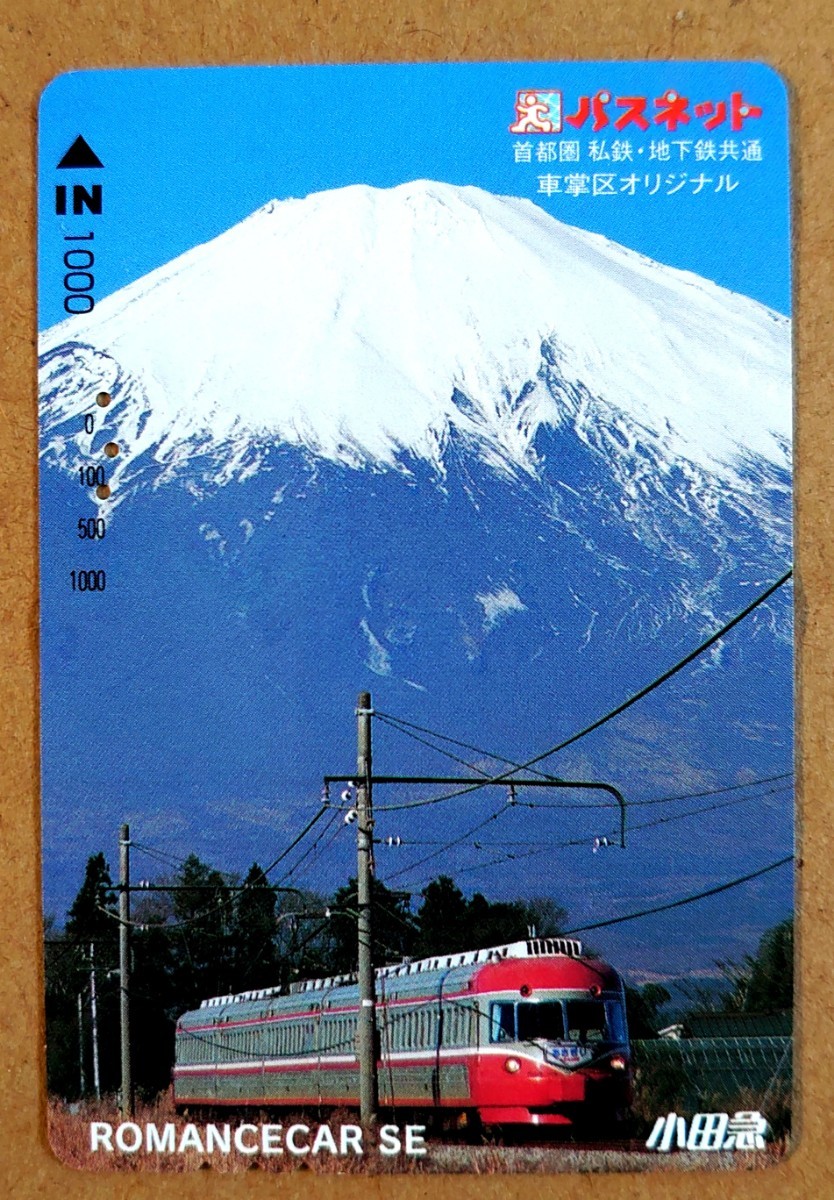 富士山をバックに走る、3000形ロマンスカーSE車「あさぎり」号の現役時代の超貴重で美しい写真画像のカードです。