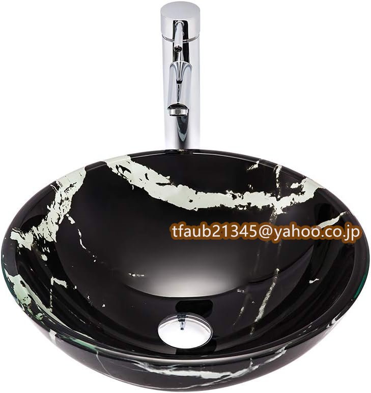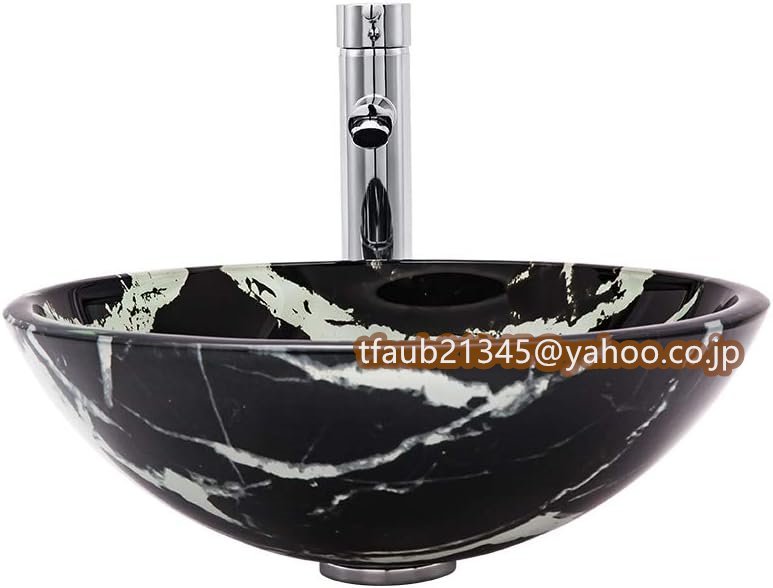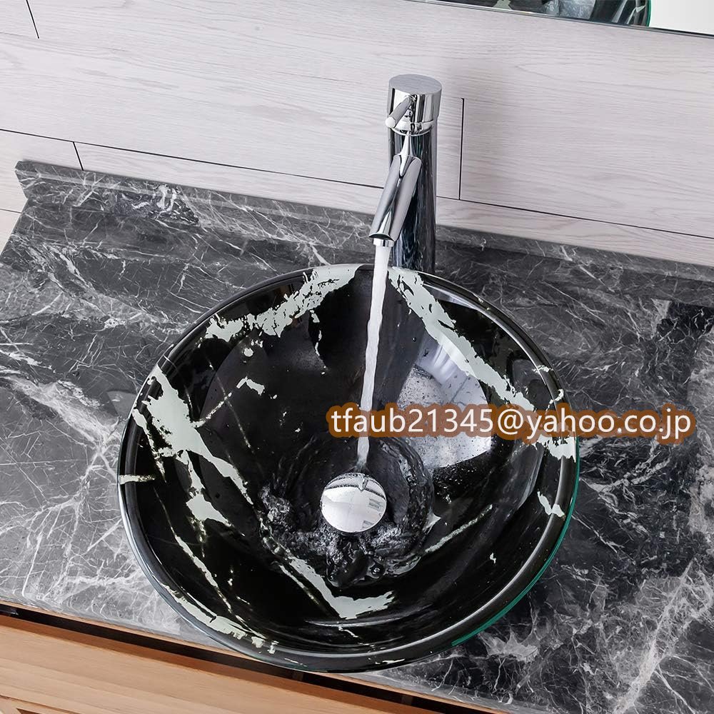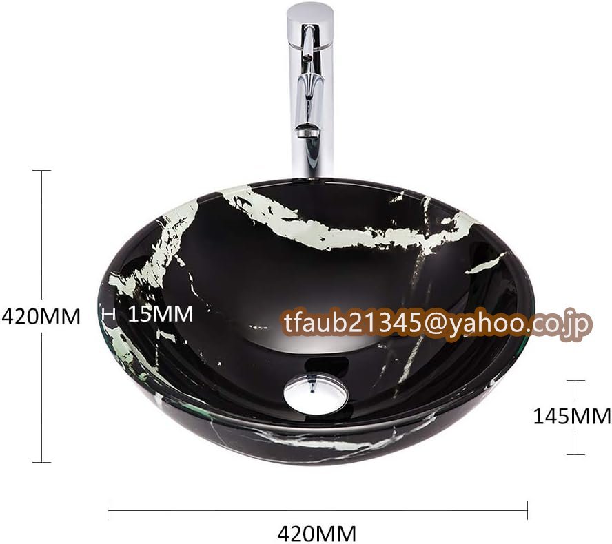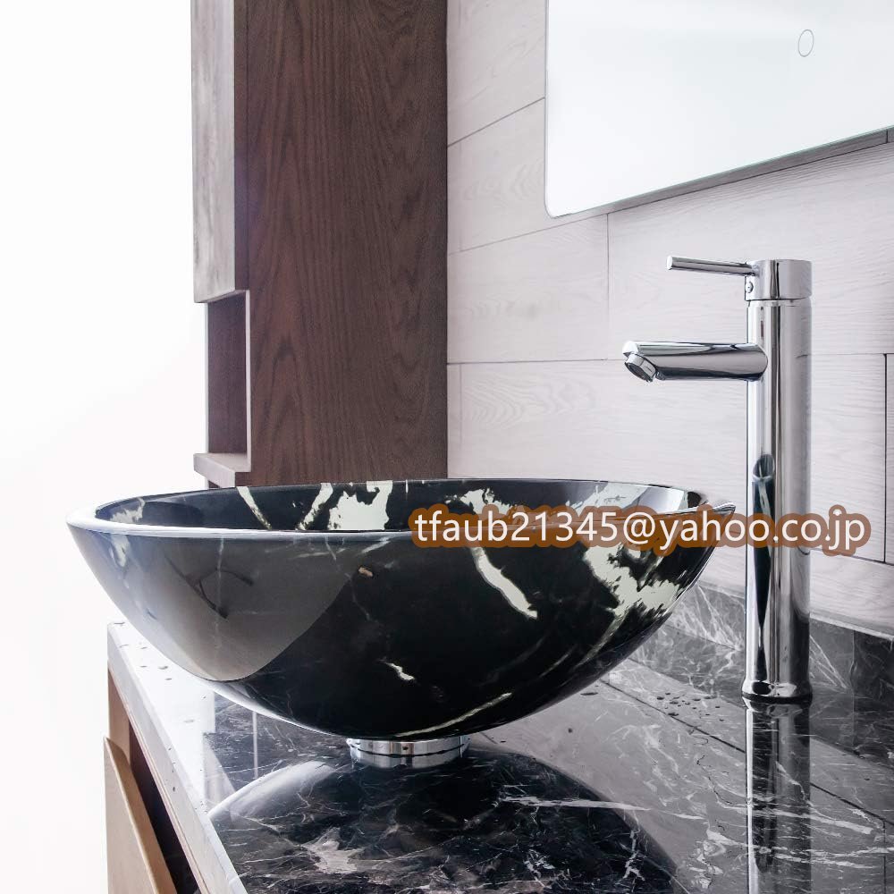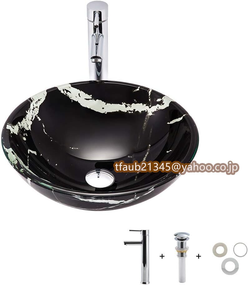 大理石系洗面ボウル 手洗いボウルセット 彩色上絵洗面ボウル&蛇口セット 浴室用 キッチン用 強化ガラス製 排水金具と蛇口付き