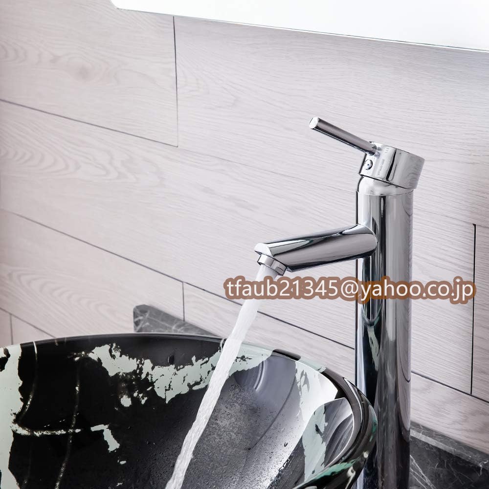 【水栓付き】洗面ボウル専用の水栓付け、水栓の弁芯はセラミックで50万回の循環テストを通して、水が漏れない、10級電気めっき基準に達し、表面処理は酸性塩霧試験に合格する。水栓は曲線力学設計を利用して飛散防止できます。ガラスの上を綺麗に流れ落ちる水流が楽しめる水栓です。