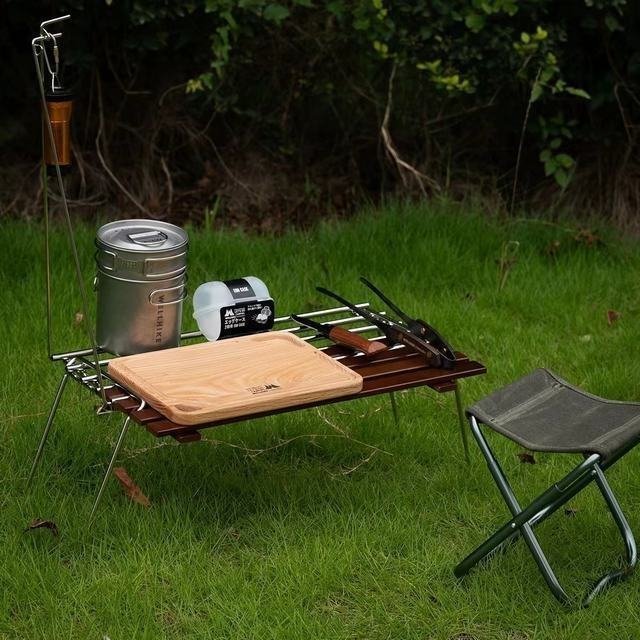コンパクトにたためる、ソロキャンプに適したテーブルです。