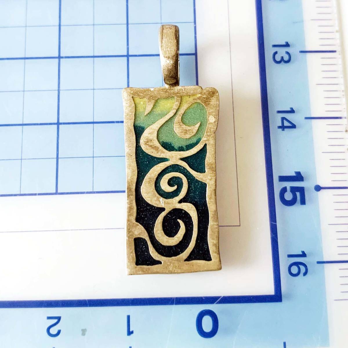 ヴィンテージ グリーン エナメル 「脱」在銘 925シルバー銀製 ペンダントトップ No.5675