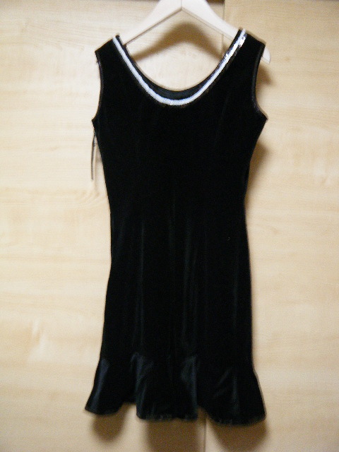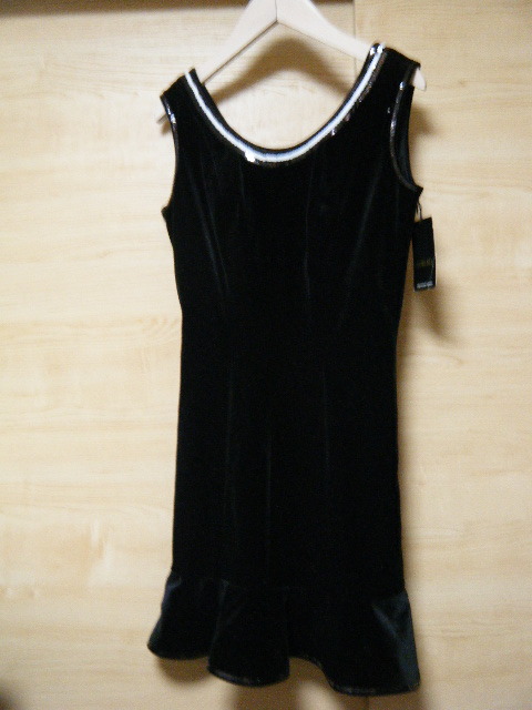 MARUKO マルコ ベロアワンピース サイズM R7805 未使用タグ付き 黒 襟回り裾スパンコール サイドファスナー