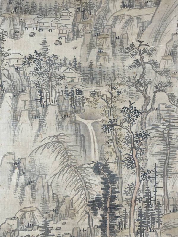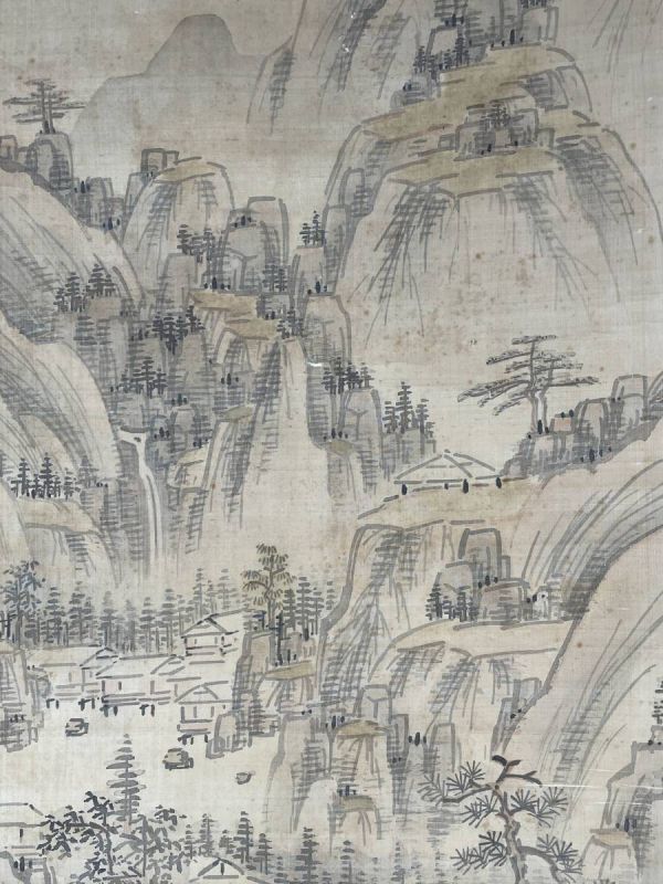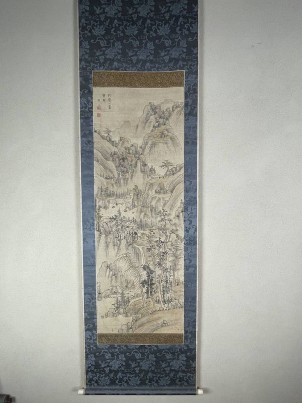 【真作】竹洞門下にしてパトロン的存在 大倉笠山 絹本 山水図 中国山水 B72志vf