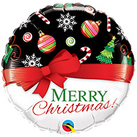 クリスマス バルーン ヘリウム入り オーナメント柄 赤リボン 白 黒 スノーフレーク
