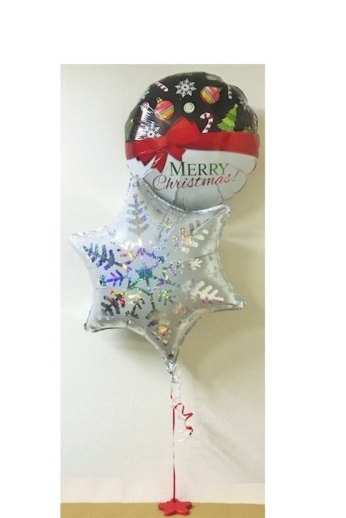 大人可愛い変わり柄のクリスマスバルーンにキラキラのスノーフレーク柄バルーンを組み合わせました。