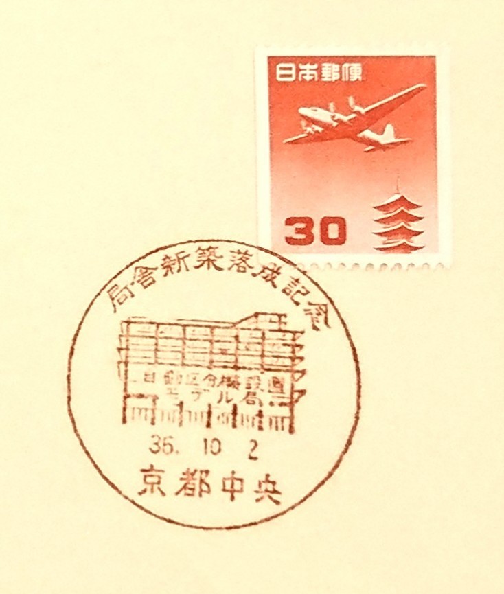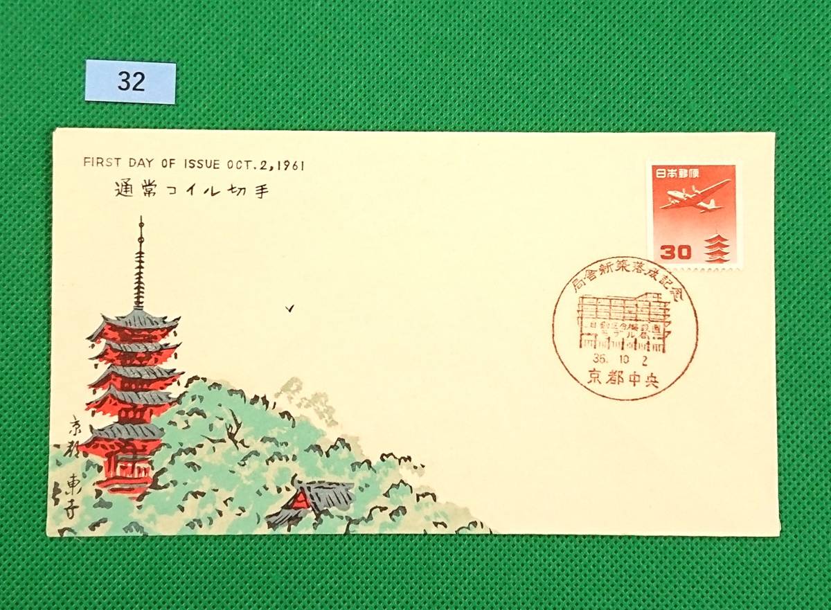 FDC/ア/航空切手/五重塔コイル/初日印/京都中央記念印/解説書無し/1961年/初日カバー №32
