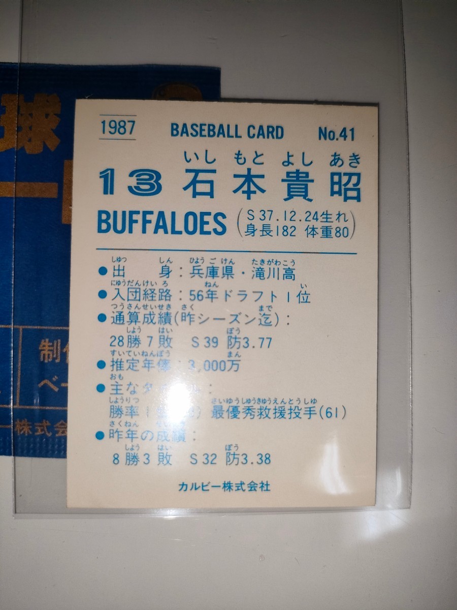 石本貴昭 87 カルビープロ野球チップス No.41 近鉄バファローズ