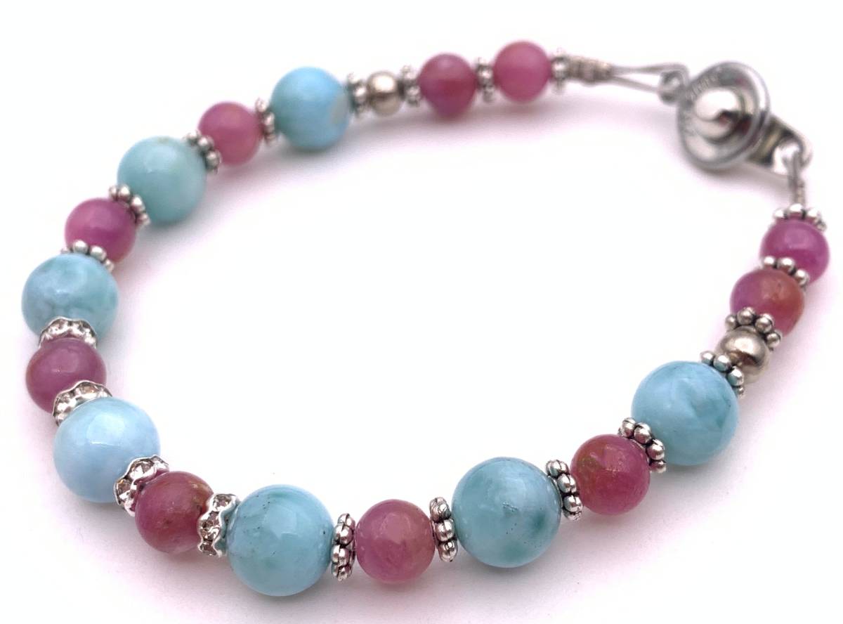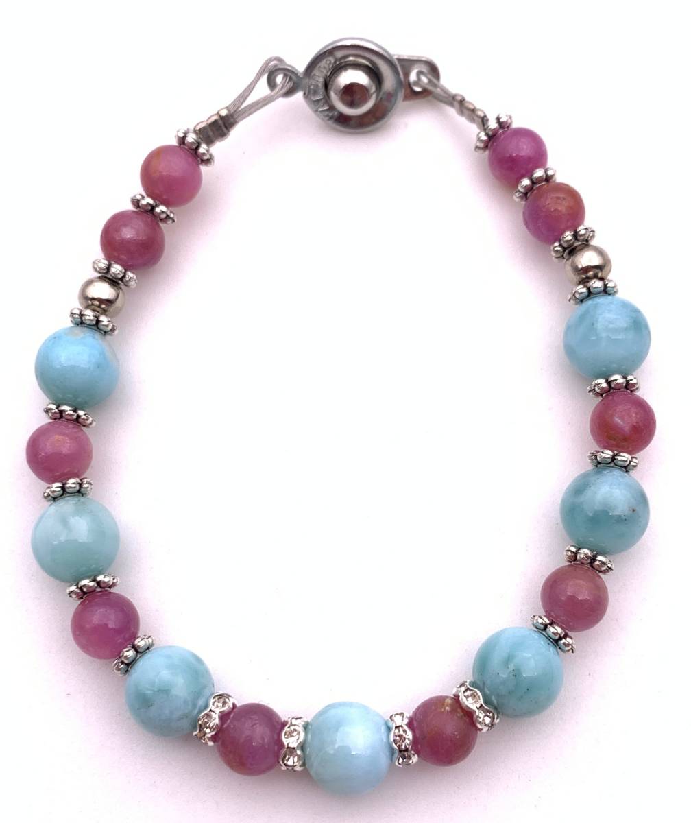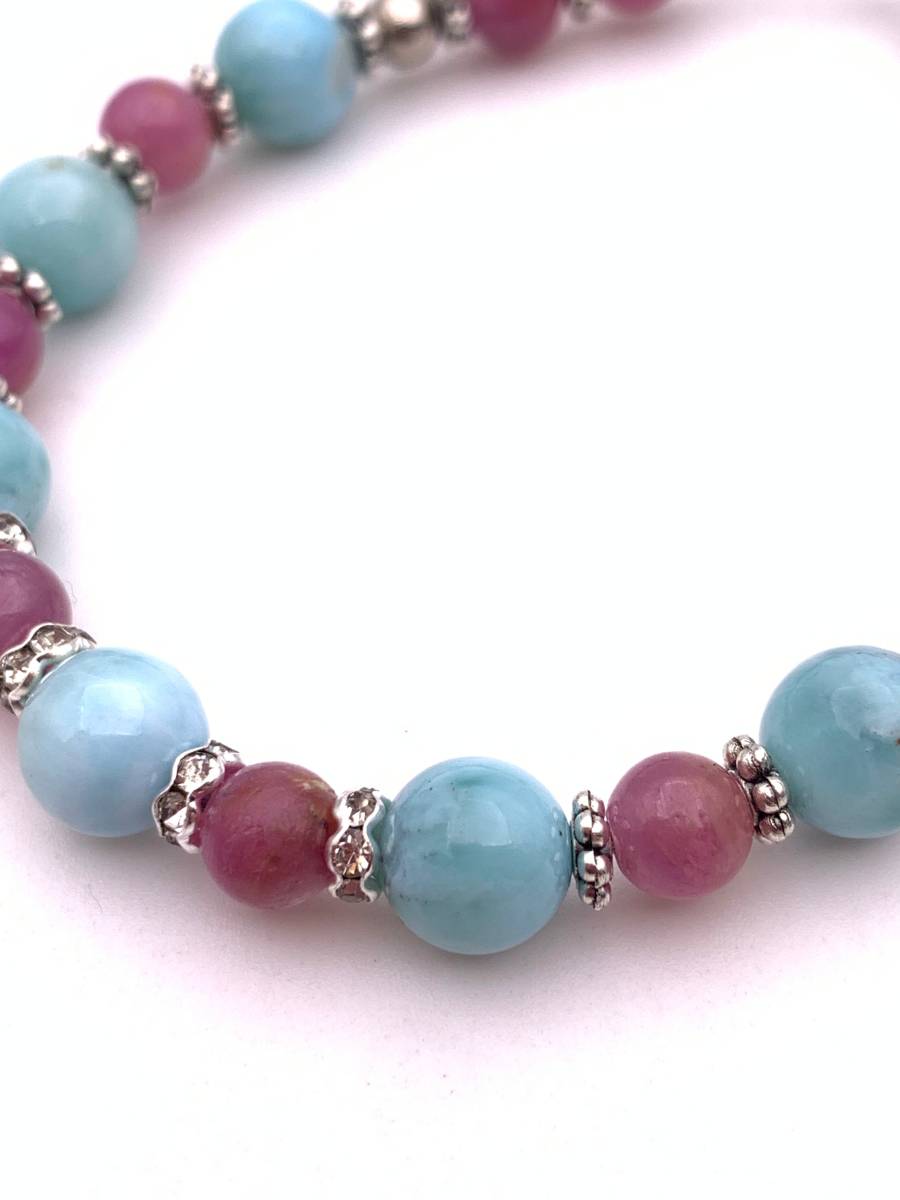 天然石ラリマー&ルビーのブレスレット