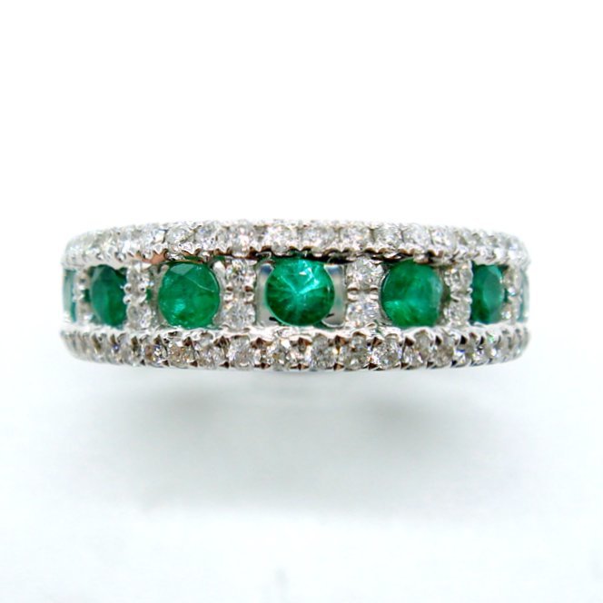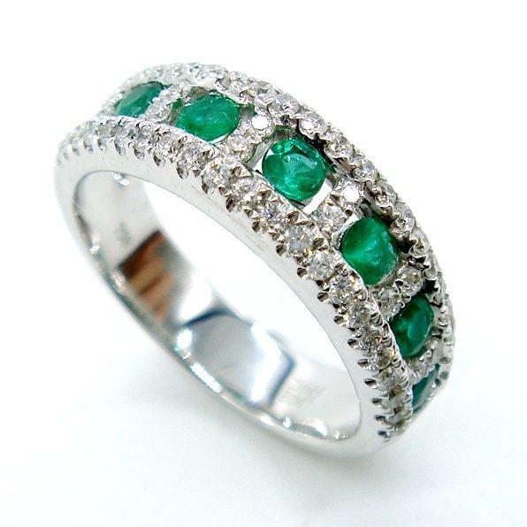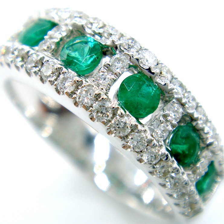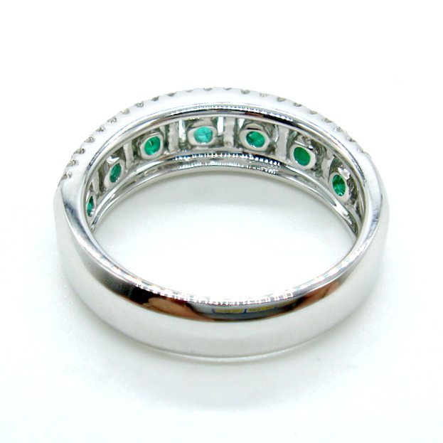 ■商品詳細■<<br>地金:K18WG<br>製品総重量:6.18g<br>直径約2.5mmサイズ ラウンド エメラルド:7pcs-0.47ct製品最大径 縦約(リング幅) 5.8mm