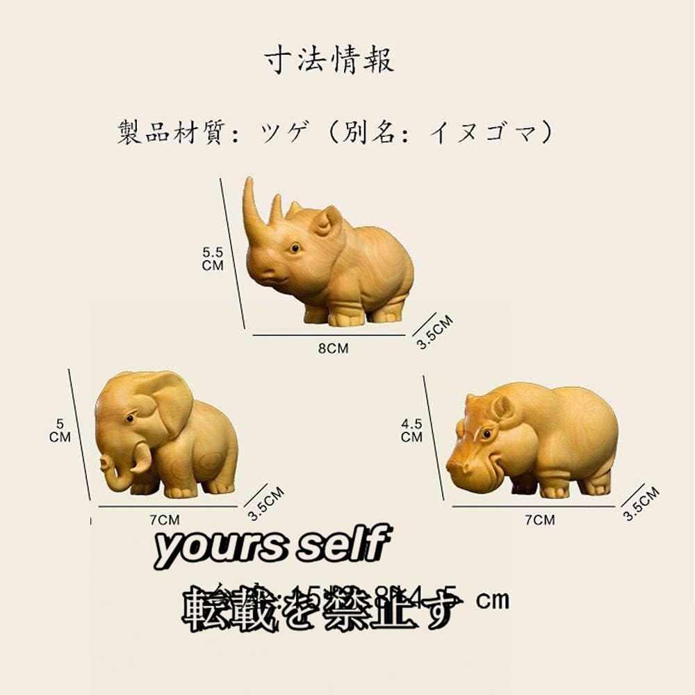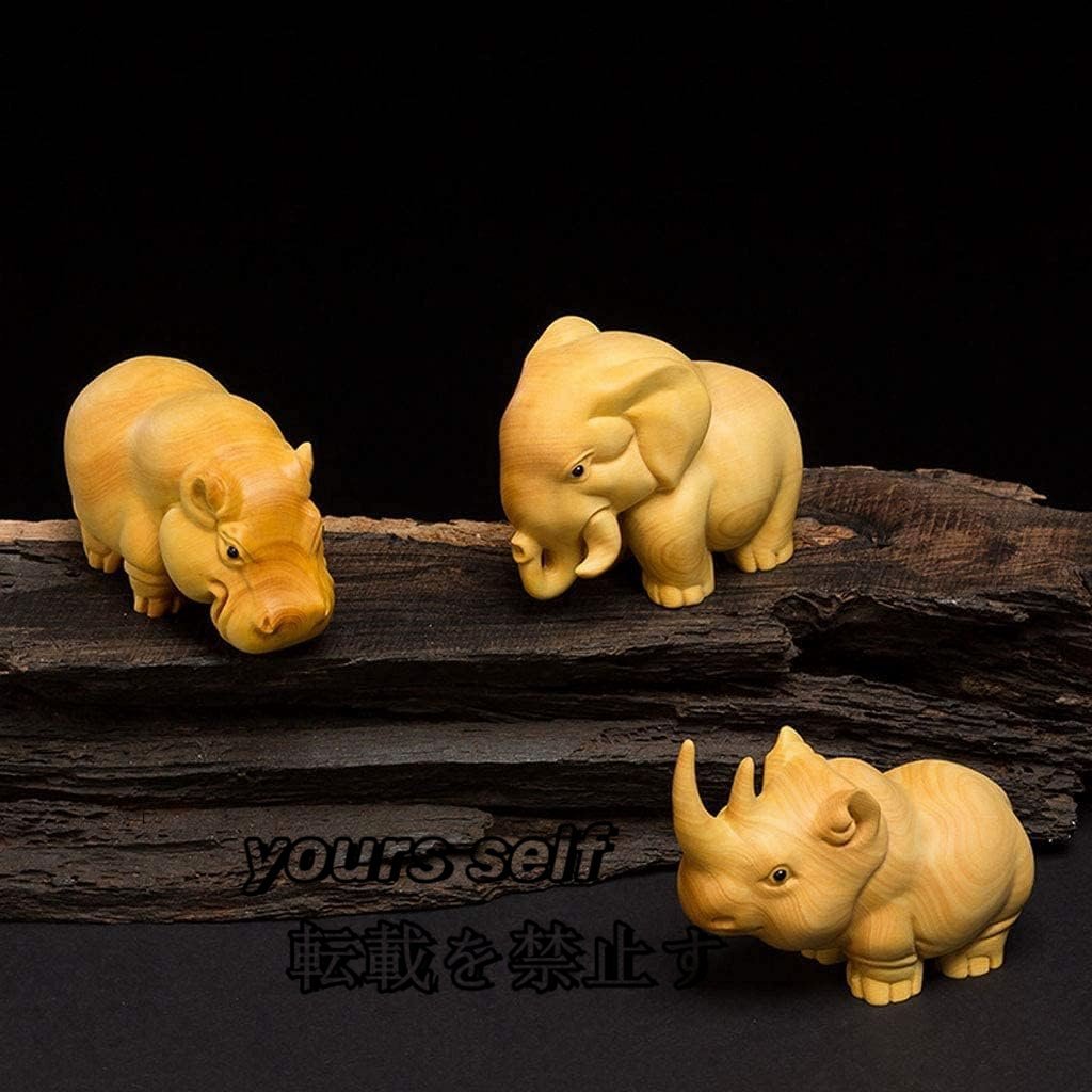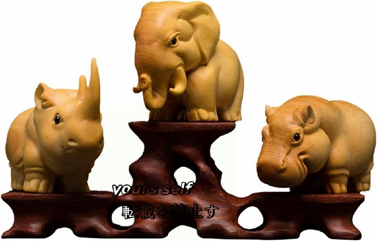 最新の制作可愛い 木彫 サイ 象の置物 カバの置物黄楊 柘植 木製彫刻 手芸 ギフト 飾り物 開運(3点セット)