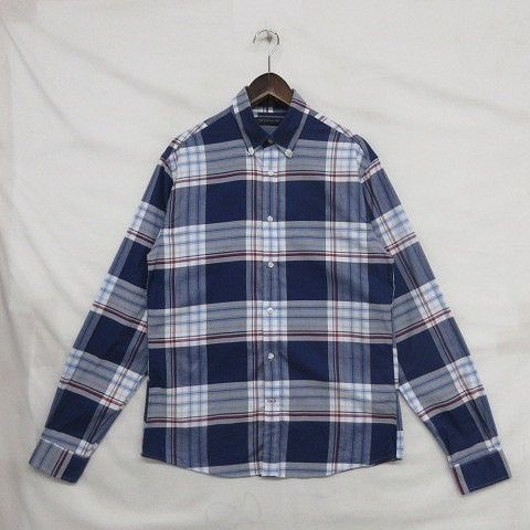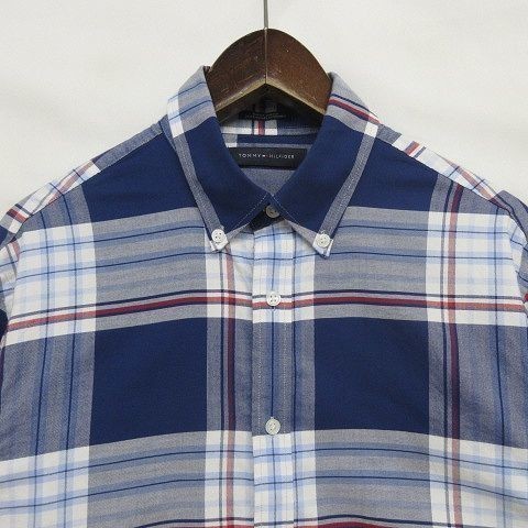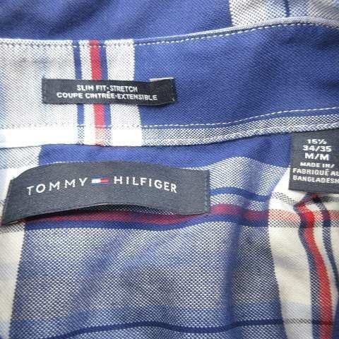 トミー ヒルフィガー サイズ M ボタンダウン シャツ 長袖 チェック柄 ストレッチ ブルー TOMMY HILFIGER 古着 1J1993