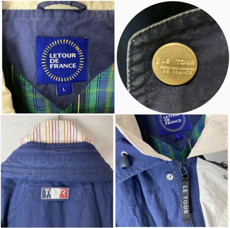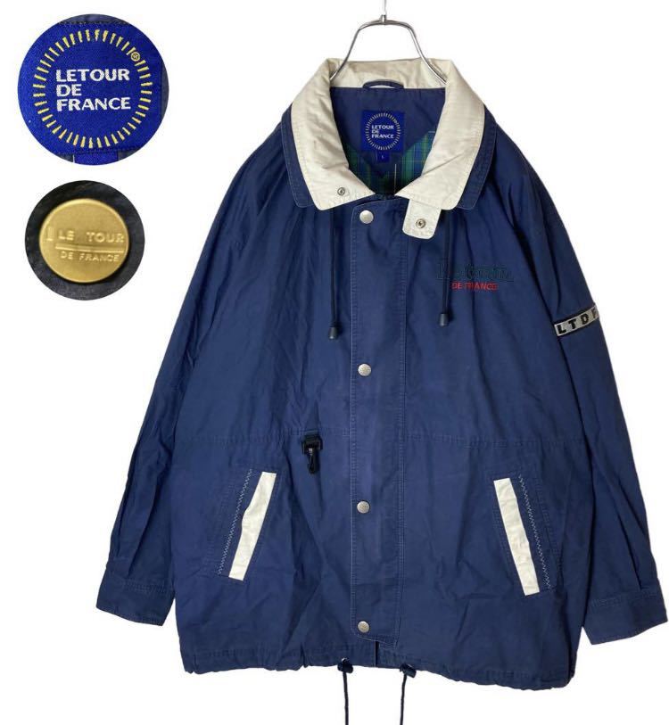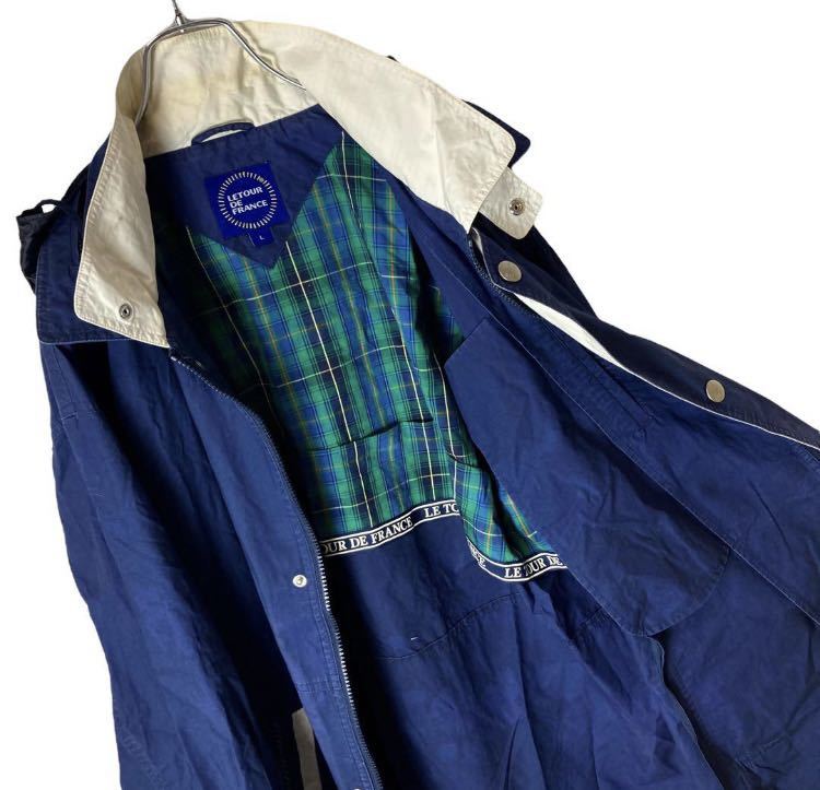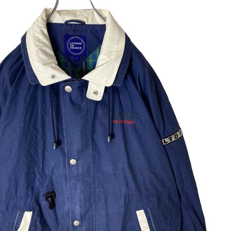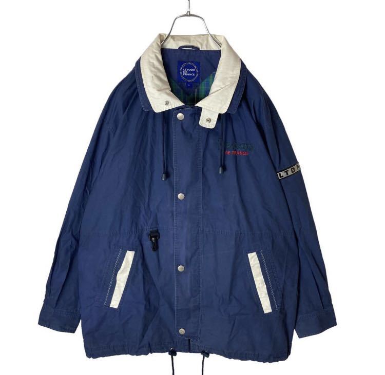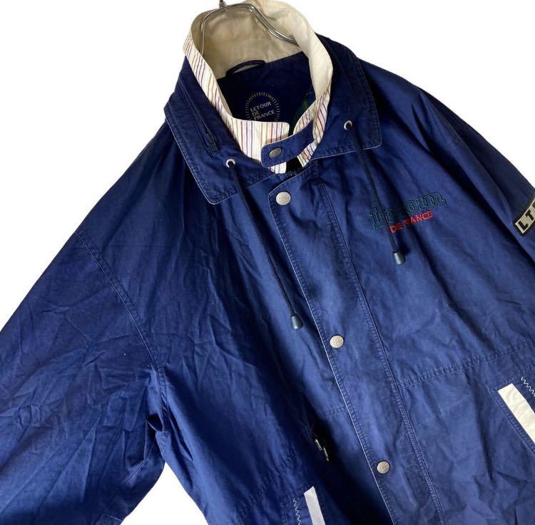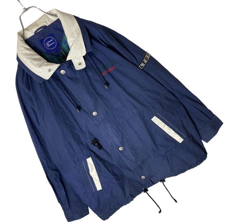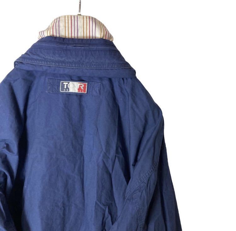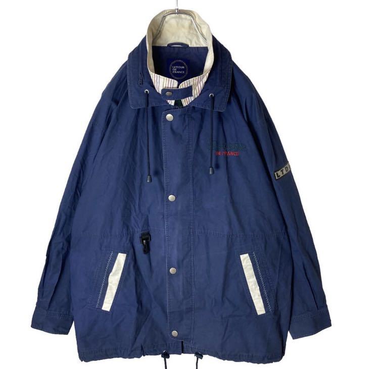 希少90sレトロ古着!ネイビーコットンコート刺繍ロゴゆったりサイズ
