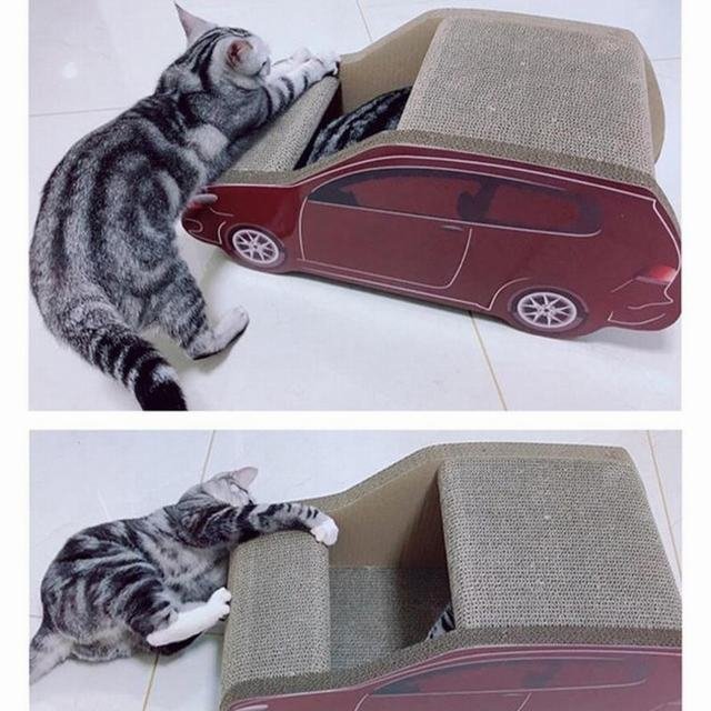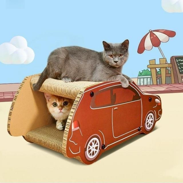 猫ハウス 猫小屋 SUV車形段ボール こペット用品 キャットダンボールハウス 猫用爪とぎ ペットハウス 爪とぎ兼ベッド ブラウン