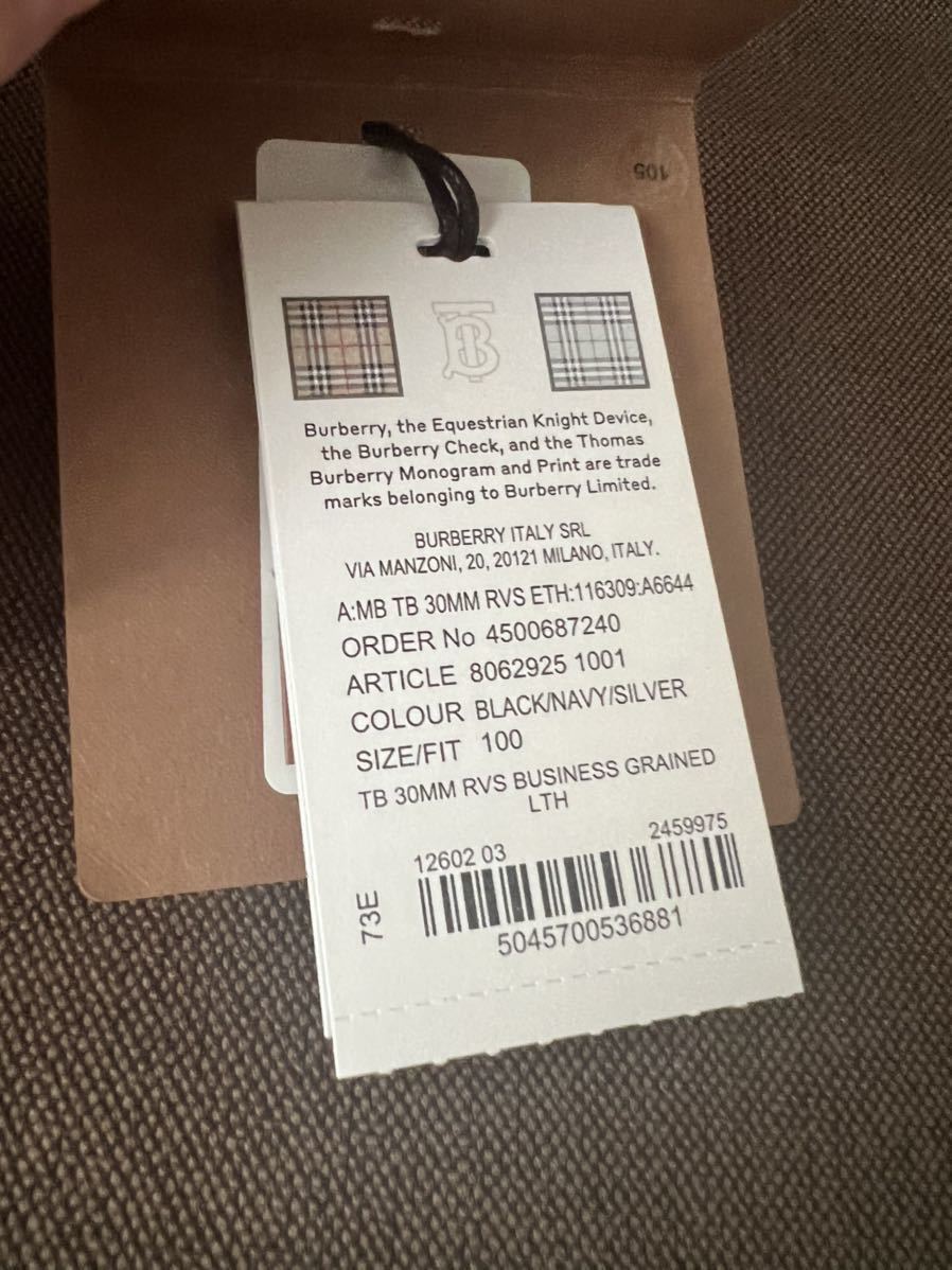 新品 バーバリー TB ロゴ レザー ベルト サイズ100 幅3センチ 黒