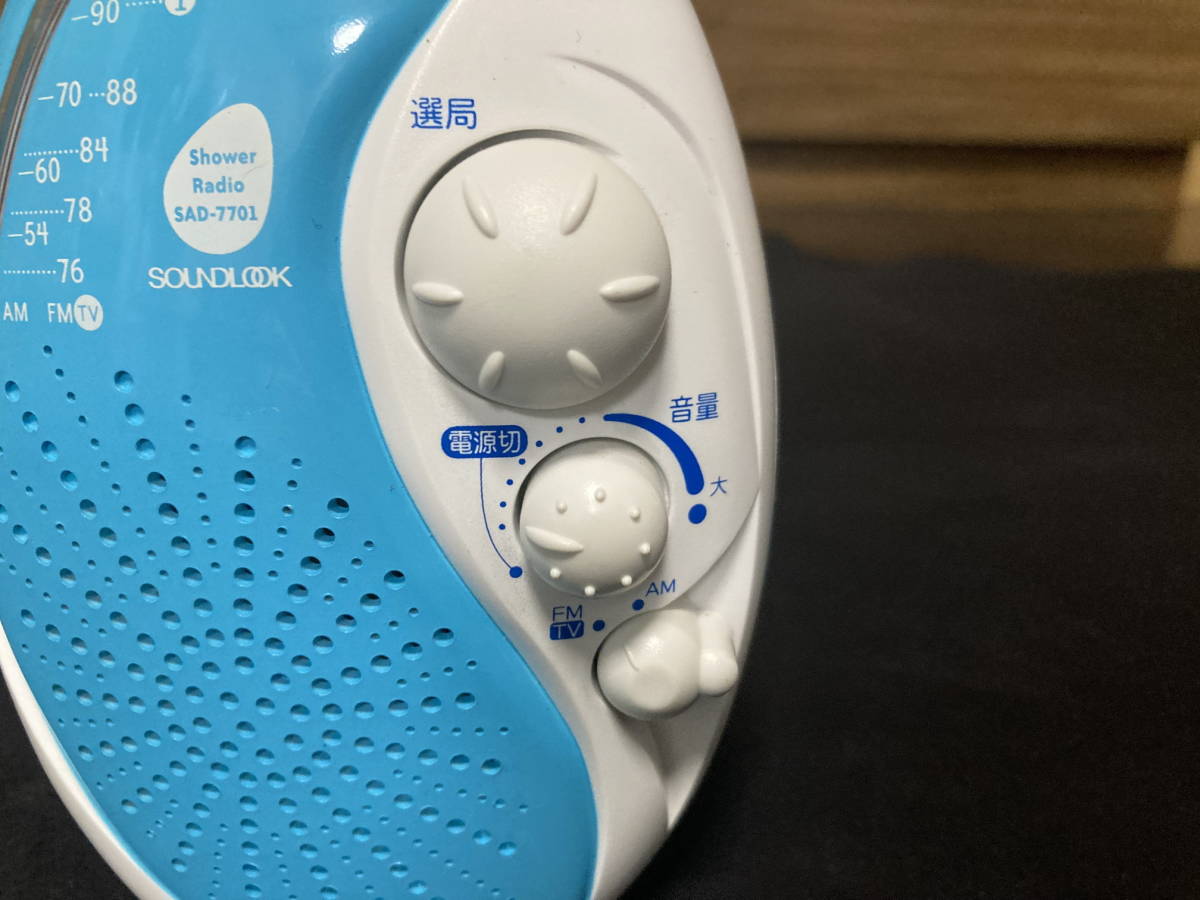 ☆USED・生活防水ラジオ・シャワーラジオ・SOUND LOOK ブルー SAD-7701 小泉 コイズミ FMラジオ☆