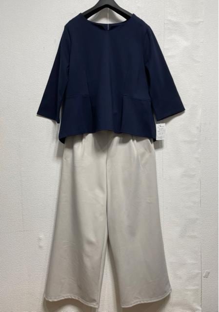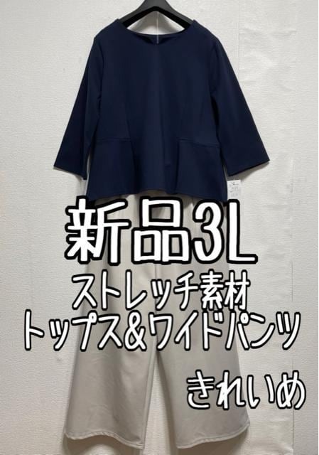 新品☆3L♪紺系ストレッチトップス&ワイドパンツ♪きれいめセット☆z500