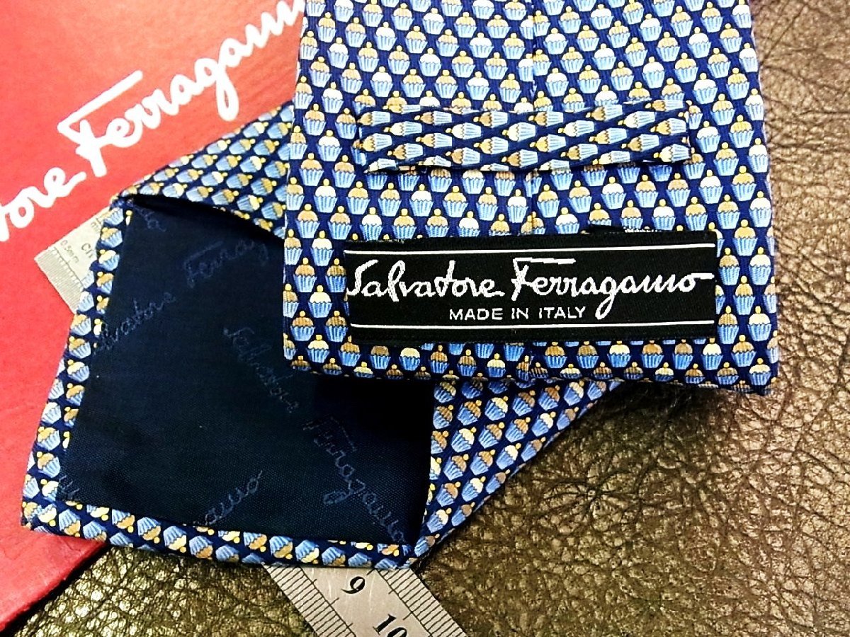 ♪vr0106♪良品♪【Ferragamo】フェラガモ【カップケーキ スイーツ 柄】ネクタイ