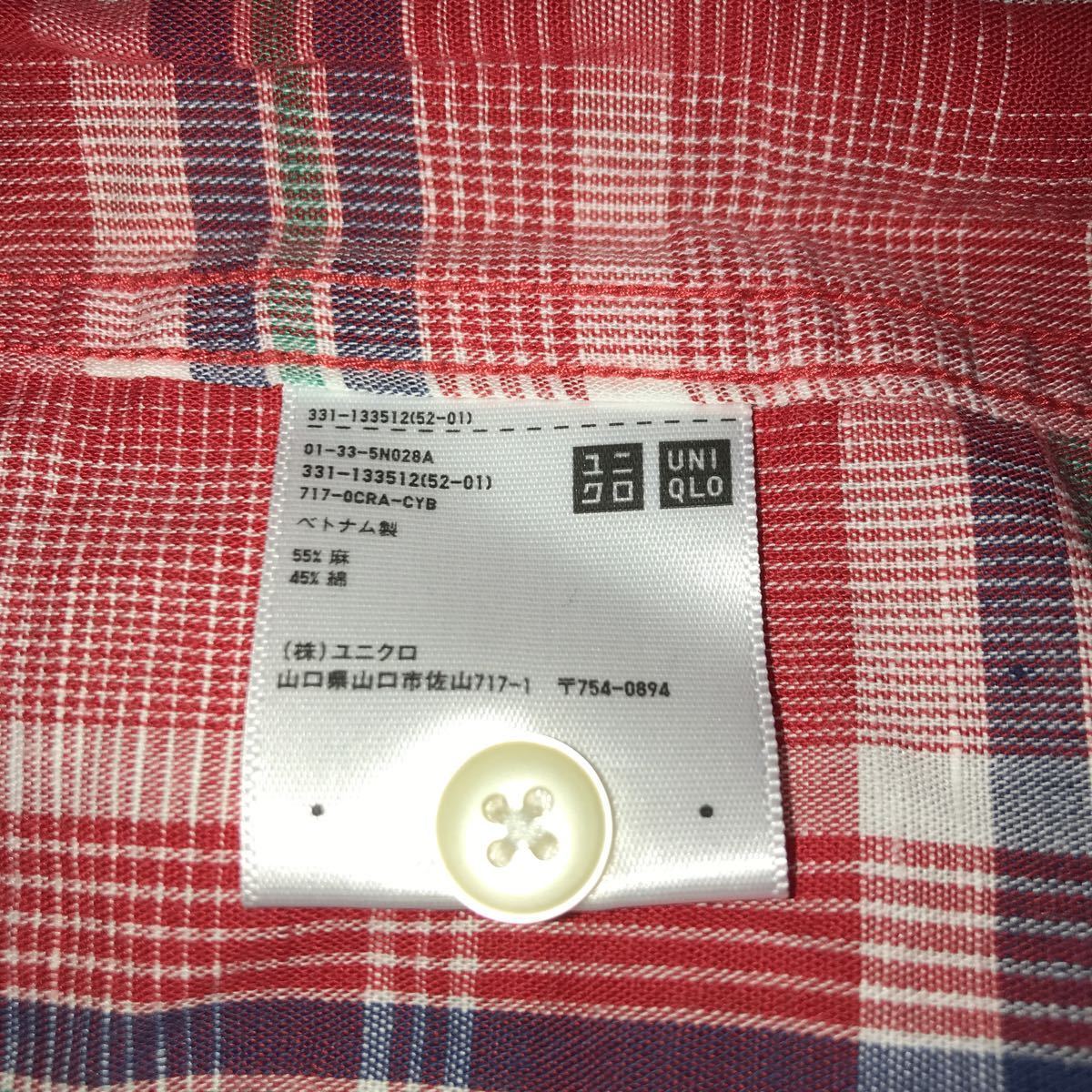 ユニクロのリネンコットンチェックシャツ(半袖) です。