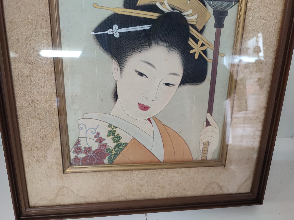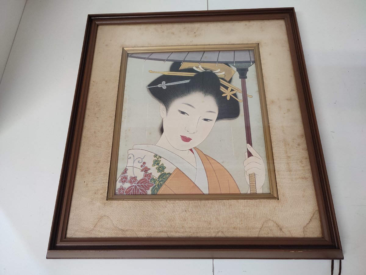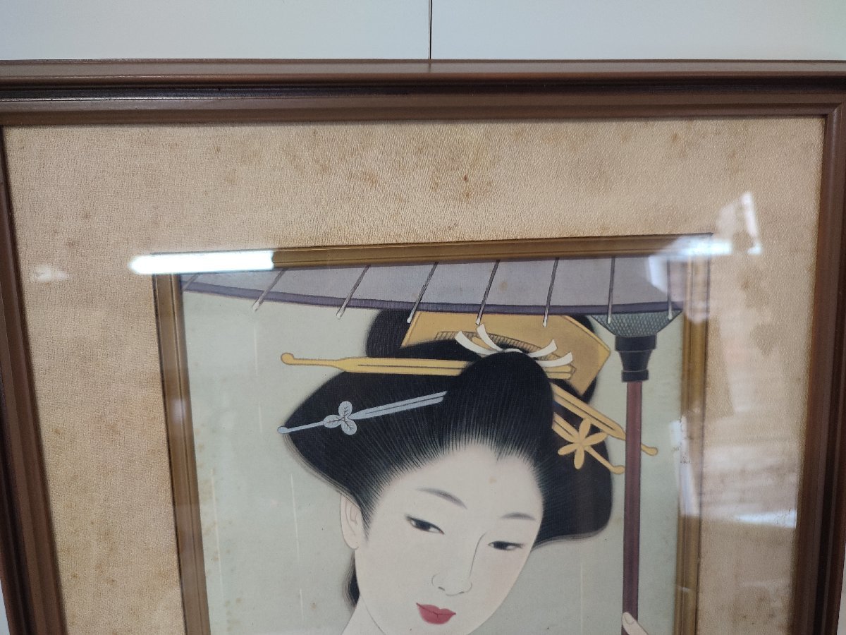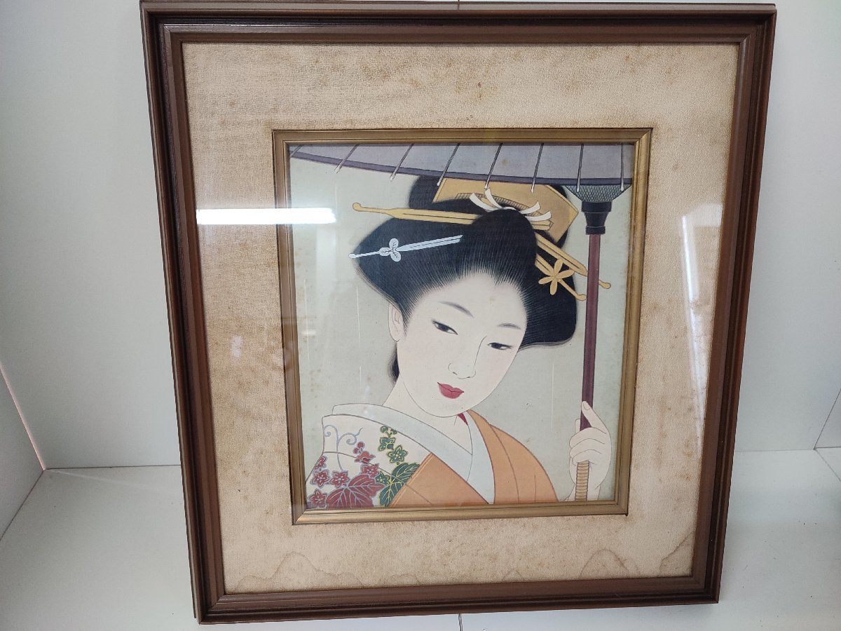 GTH/L11C-DA3 絵画 日本画 水彩画 額 縁縦44cm×横41cm 着物女性の絵(作者タイトル不明)