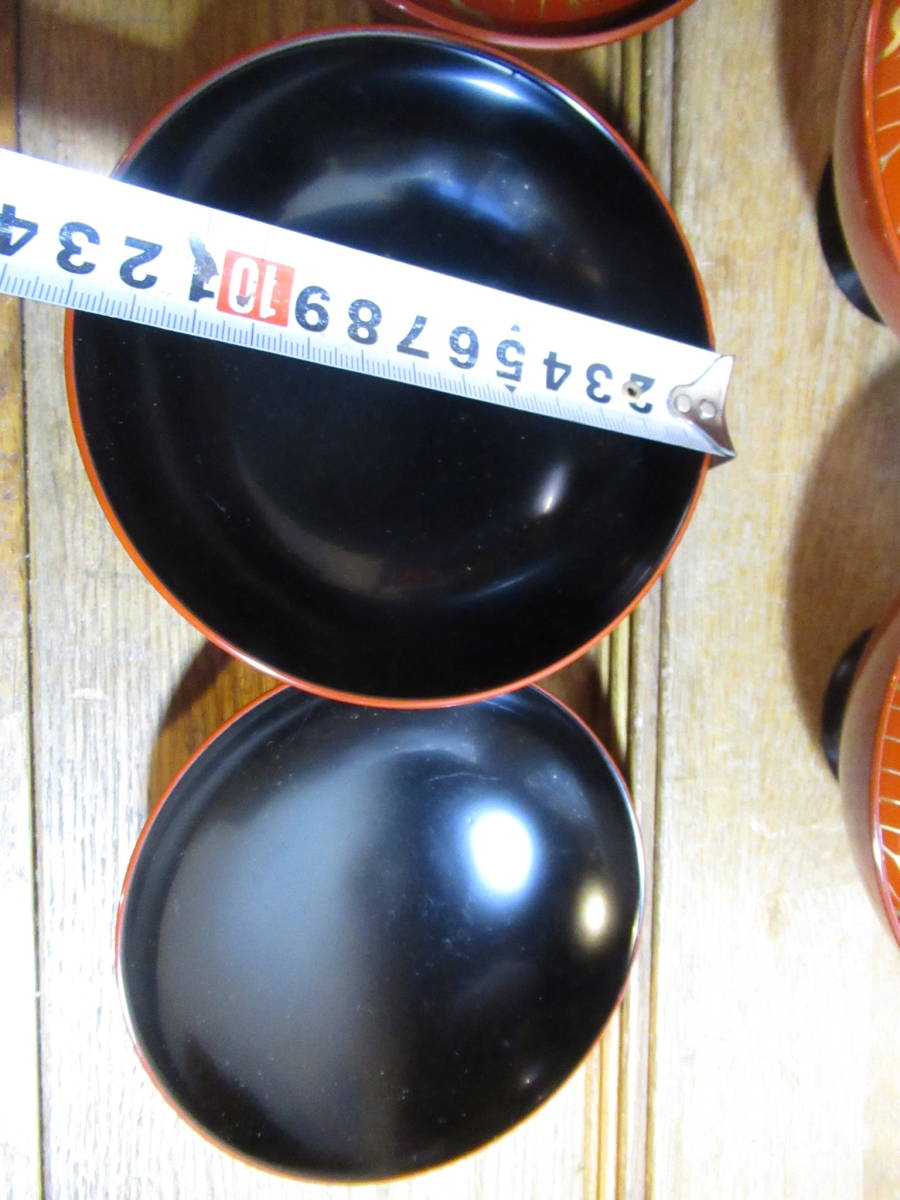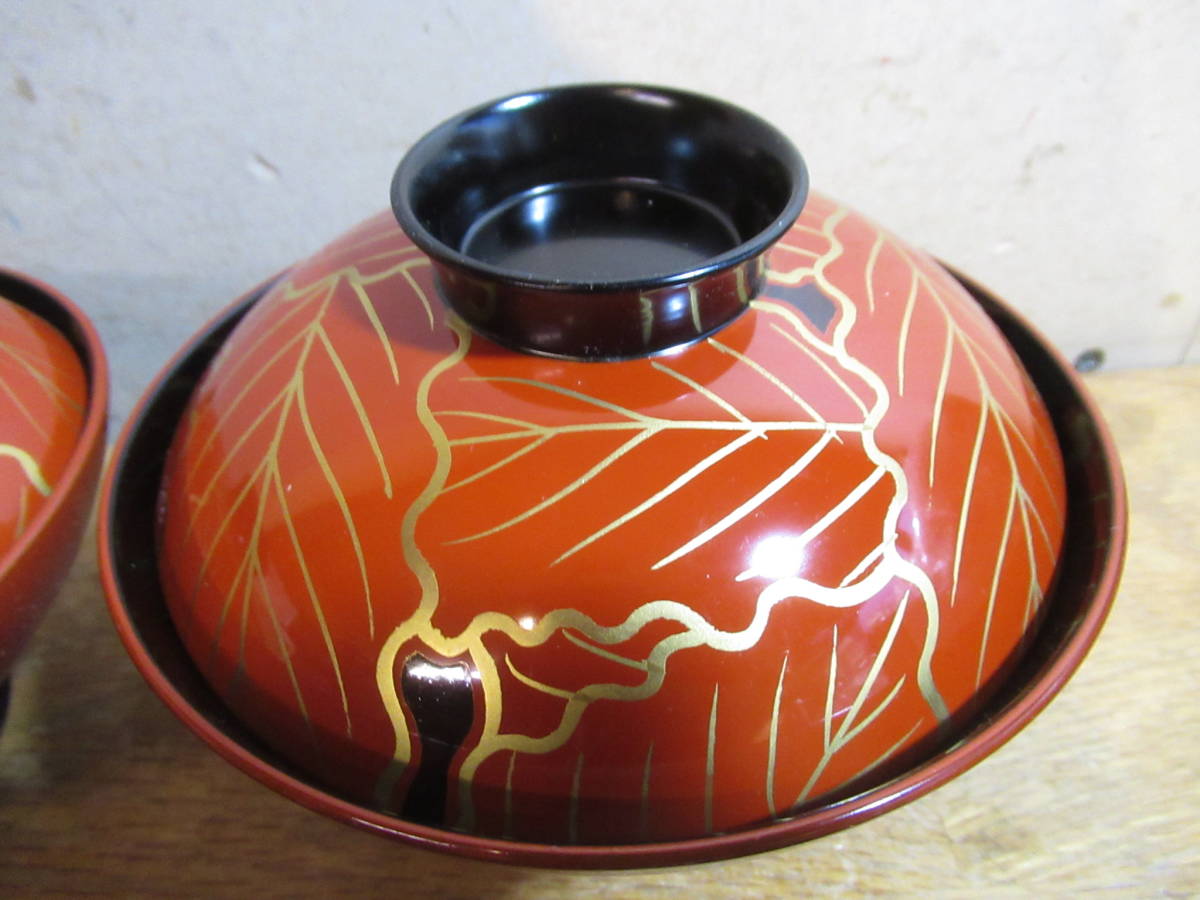 漆器塗椀 柏葉文様 外朱内黒 樹脂生地 5客組 (和食器 お椀 漆器