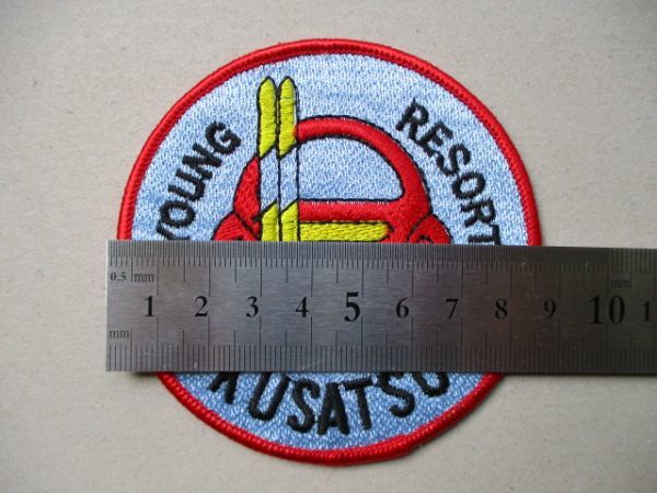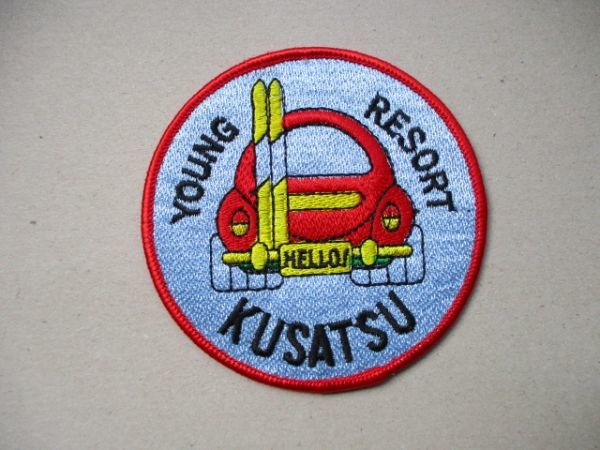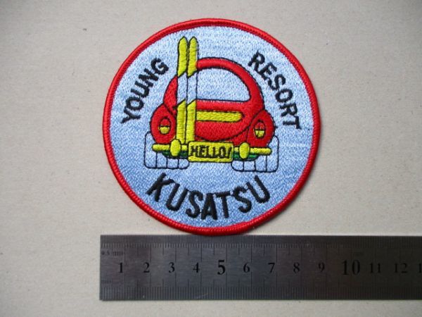 80s 草津KUSATSUスキーSKIワッペン/ワーゲンVolkswagen車PATCH雪山キャラクター刺繍スキー場レトロ昭和アップリケ旅行パッチ V196
