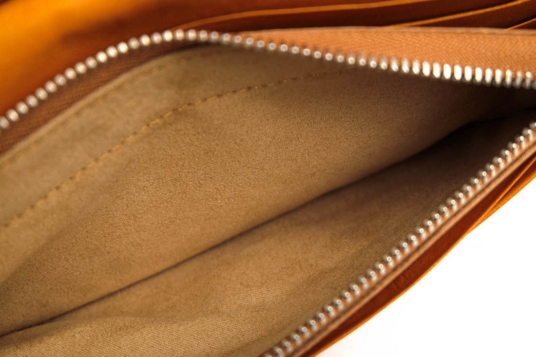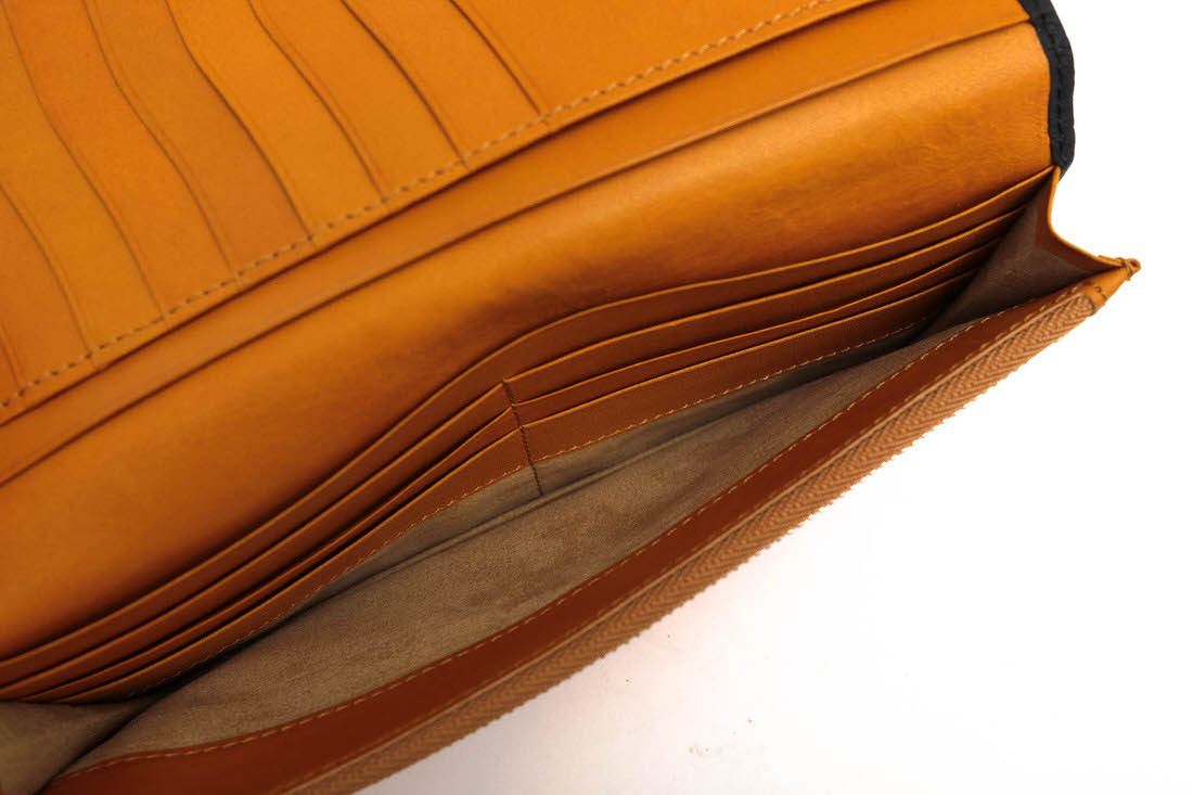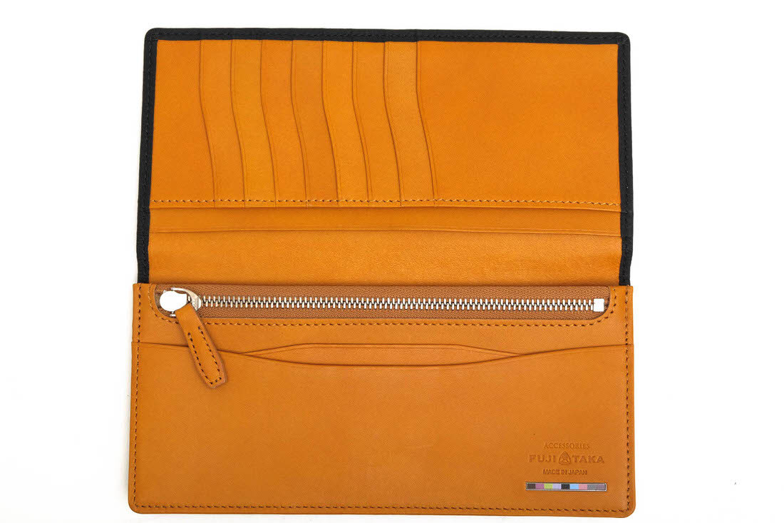 デュプイ社製カーフレザーに、国産ヌメ革を内装に用いたシリーズ。内側のブランドロゴ下の金具には、「藤」「桜」「梅」「若竹」「小豆」「銀鼠」「臙脂」「漆喰」「漆黒」の、色を添えており、日本古来の美を表現。カード入れ、お札収納、小銭入れなど、収納スペースも充実したモデルです。 |