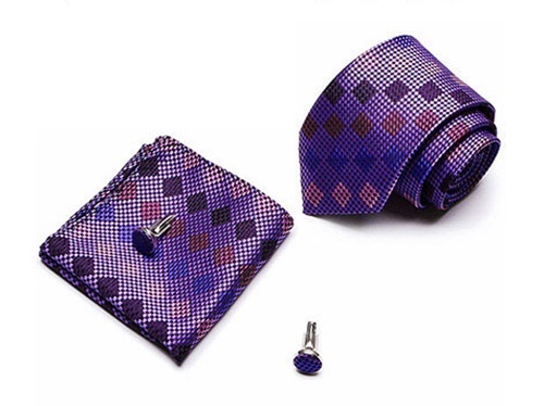 シルク素材のポケットチーフとカフス釦付のオシャレなネクタイのセットです。