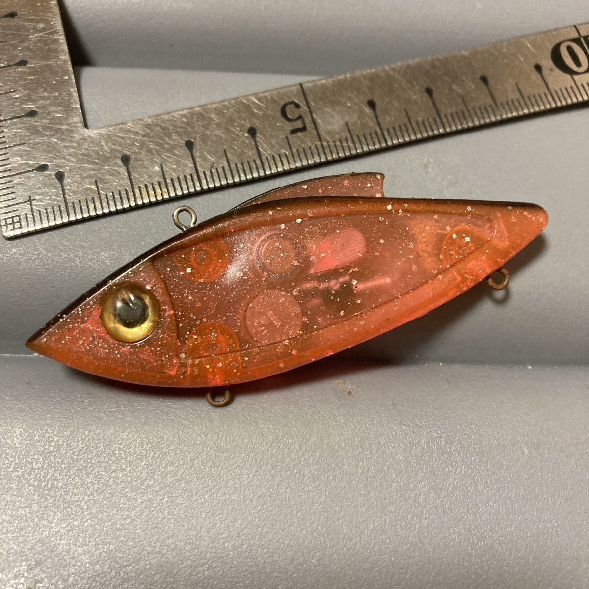 オールドのメーカー不明の電池内蔵バイブレーションのです。カラー、状態等画像にてご確認ください。保管の際のスレ等あります。電池は切れているようで光りません。おそらく交換できないような造りかと思います。なかなか珍しいルアーかと思います。