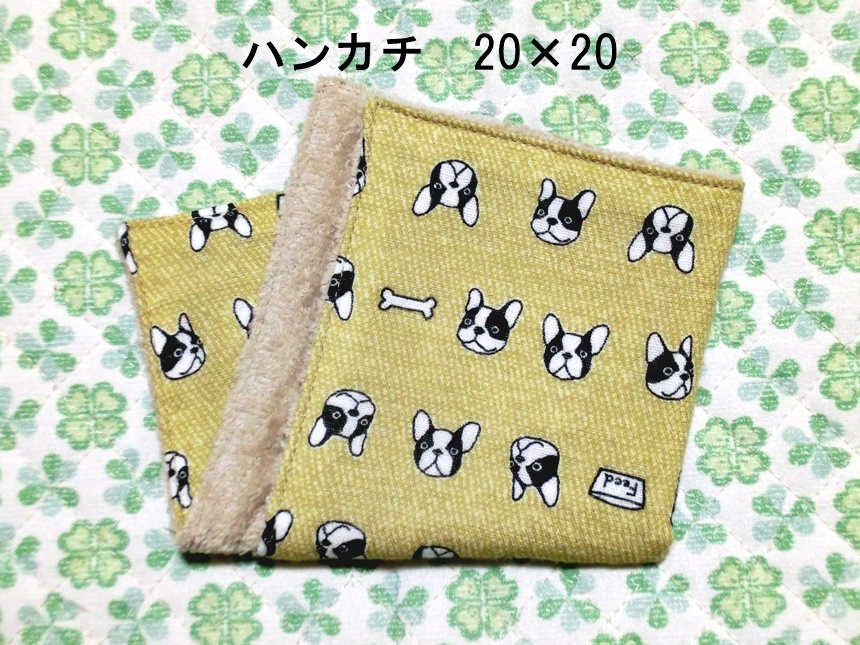 ★1839★フレンチブルドッグ★ハンカチ★20×20㎝★ダブルガーゼタオル★handmade★