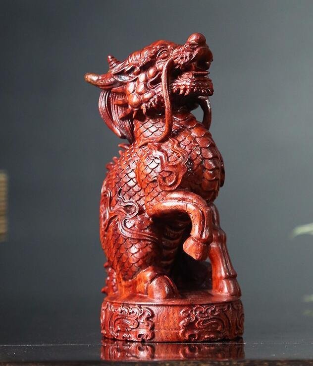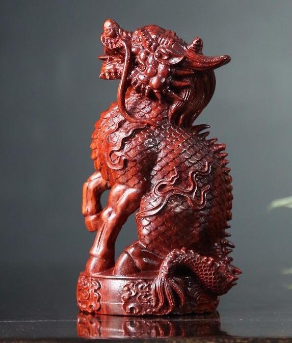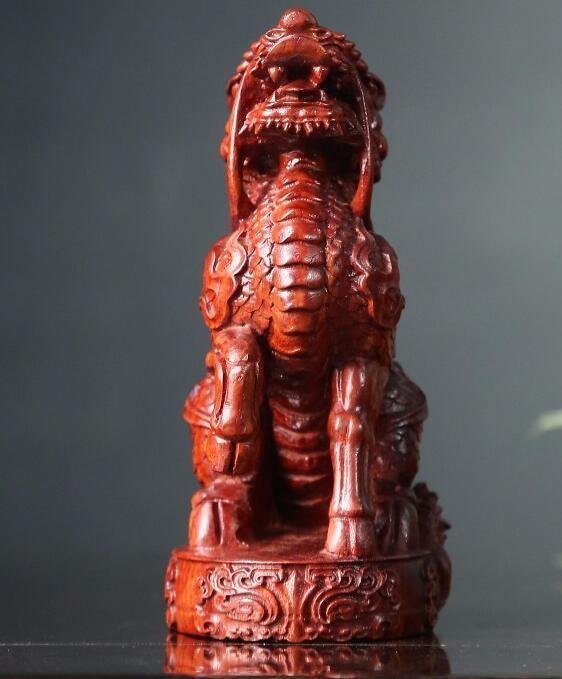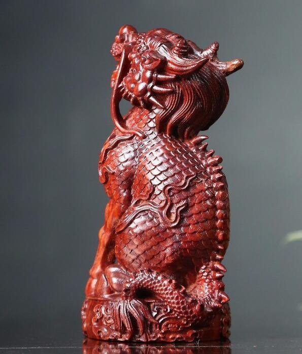 極上品◆小葉紫檀**竜亀の置物 高さ12 cm