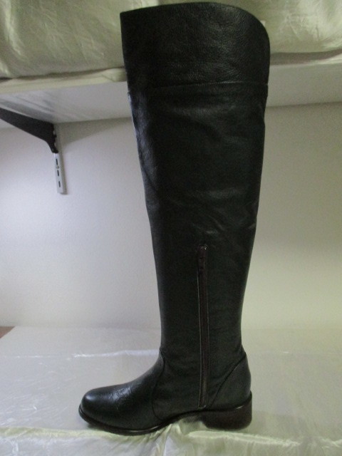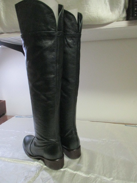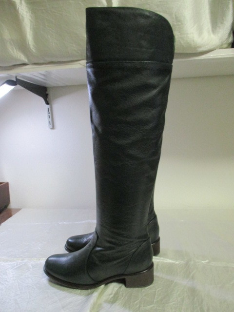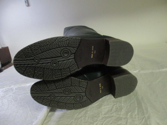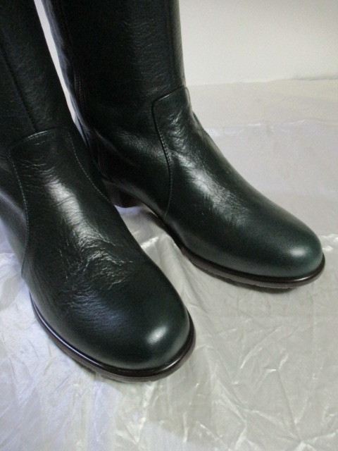 商品紹介 | 濃いグリーン系の色合いがオシャレなロングブーツです。(写真では黒っぽく見えますが濃いグリーンです) 脚の入り口部分は1回折ってはく事もできます。 脚の内側側面に茶色い22cm程の脱着用のファスナーが付いています。 ヒールは一番高い部分で約4cm程です。 素材は革製ですが、何の革かは不明です。(おそらく牛革だと思います。) 全長:ヒールを含んだ長さ約53cm 【発送方法】 ゆうパック100サイズ又は宅急便100サイズ ※北海道からの発送になります。 |