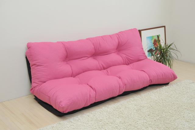 送料無料で最安! リクライニングフロアソファ 幅160 布張り ピンク色