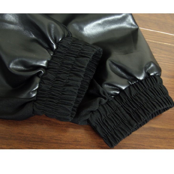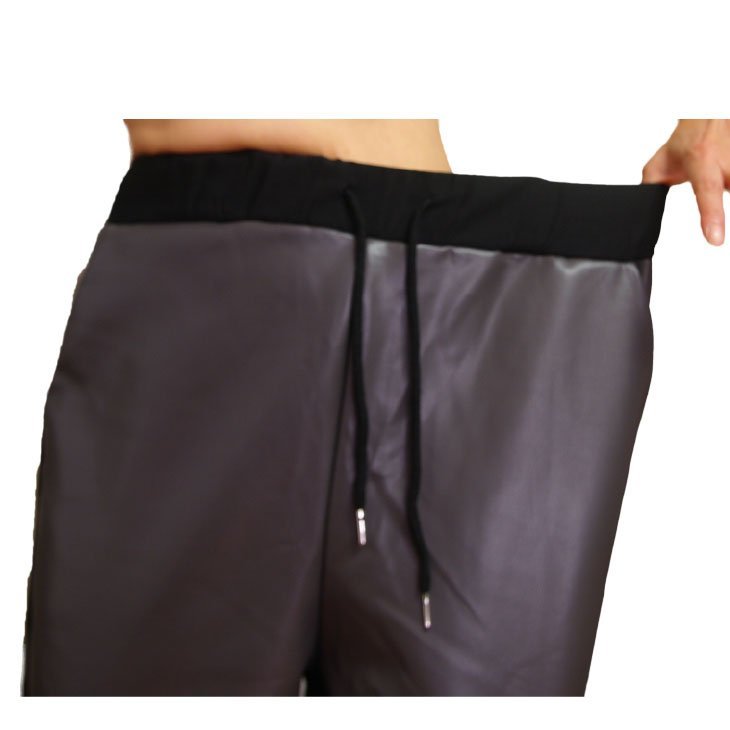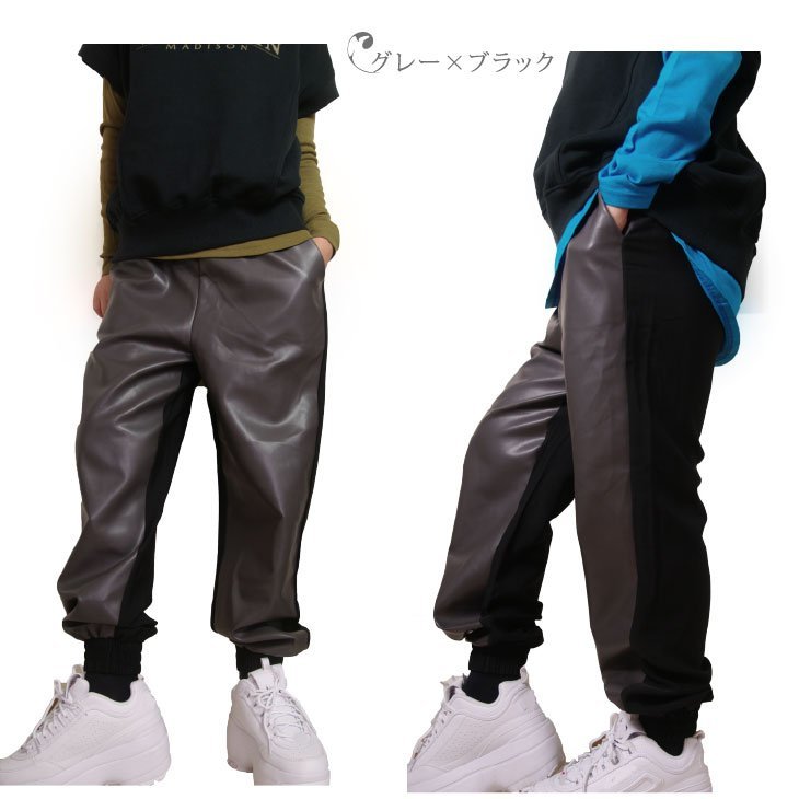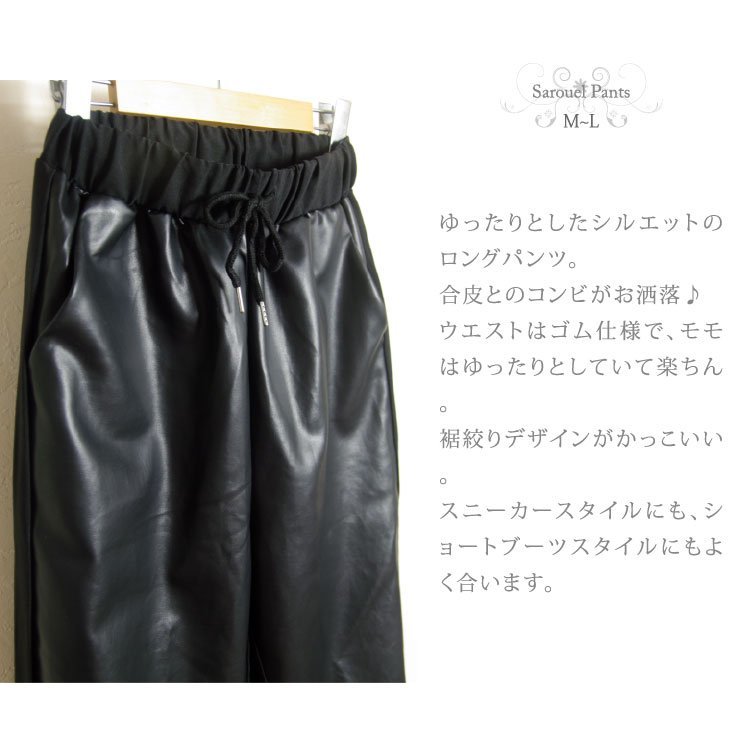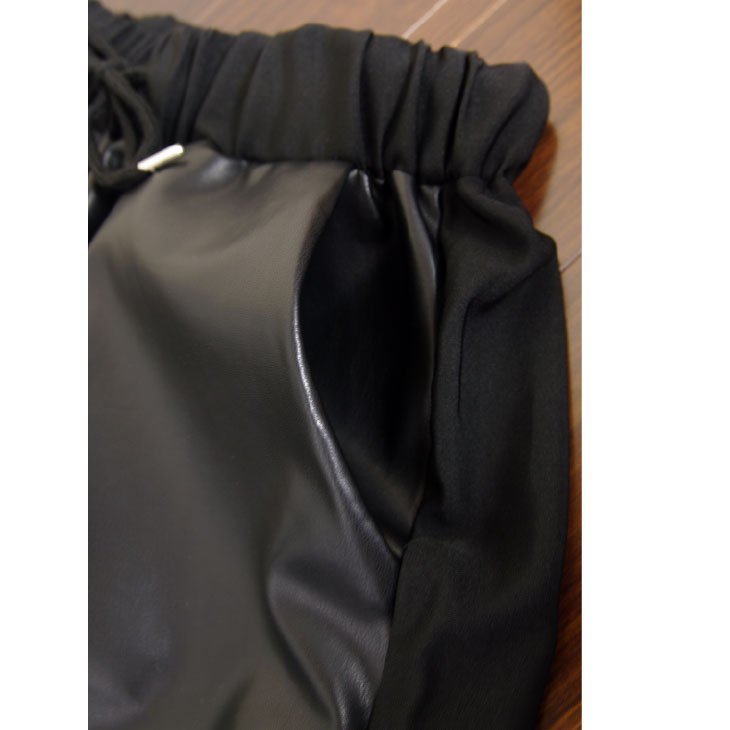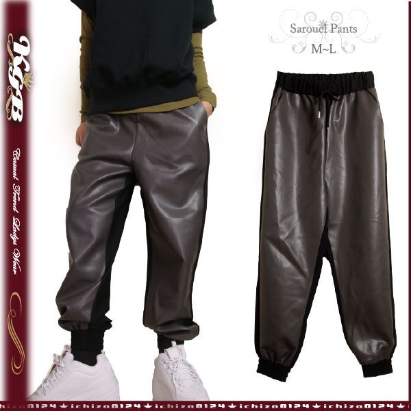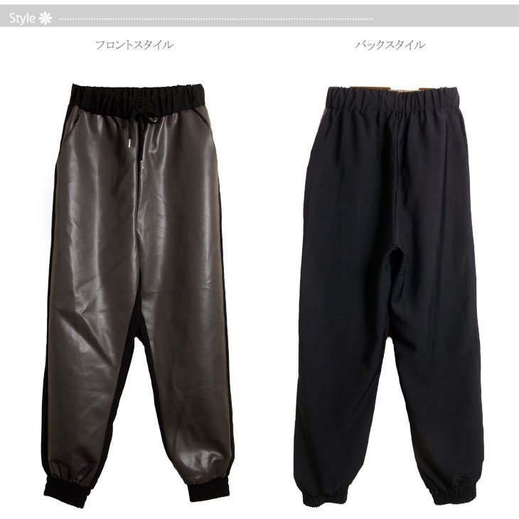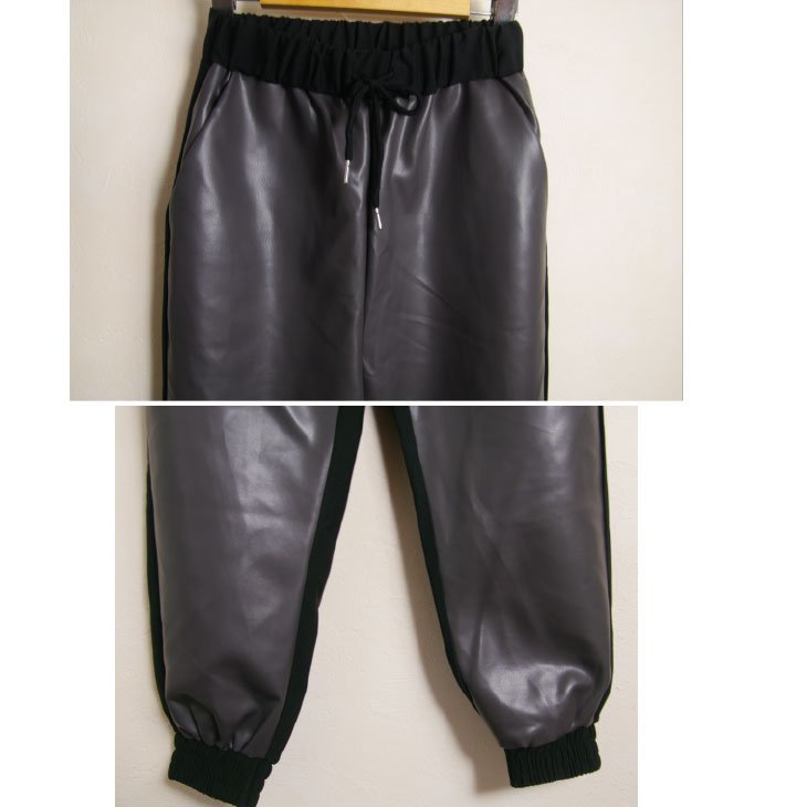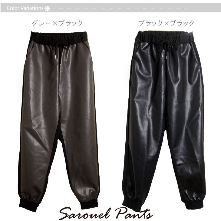 サルエルパンツ 裾絞り レディース お洒落着 ウエストゴム ボトムス ロングパンツ 合皮 M~L グレー×ブラック 新品