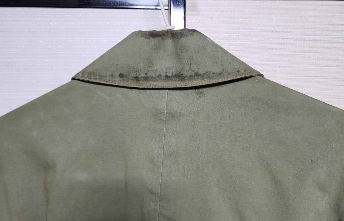 ごつくコーティングされた生地です。 サイズUS38 肩幅45身幅53x着丈98cm 修理後あります。その他汚れは画像で判断して下さい。10年程前に4万円弱で購入後、着ていません。