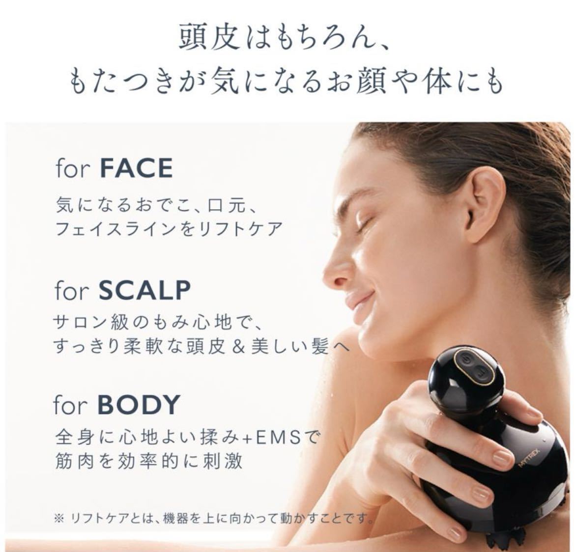 バスタイムに軽く当てて動かすだけで頭皮や顔の筋肉にアプローチし、さらにボディにも対応。