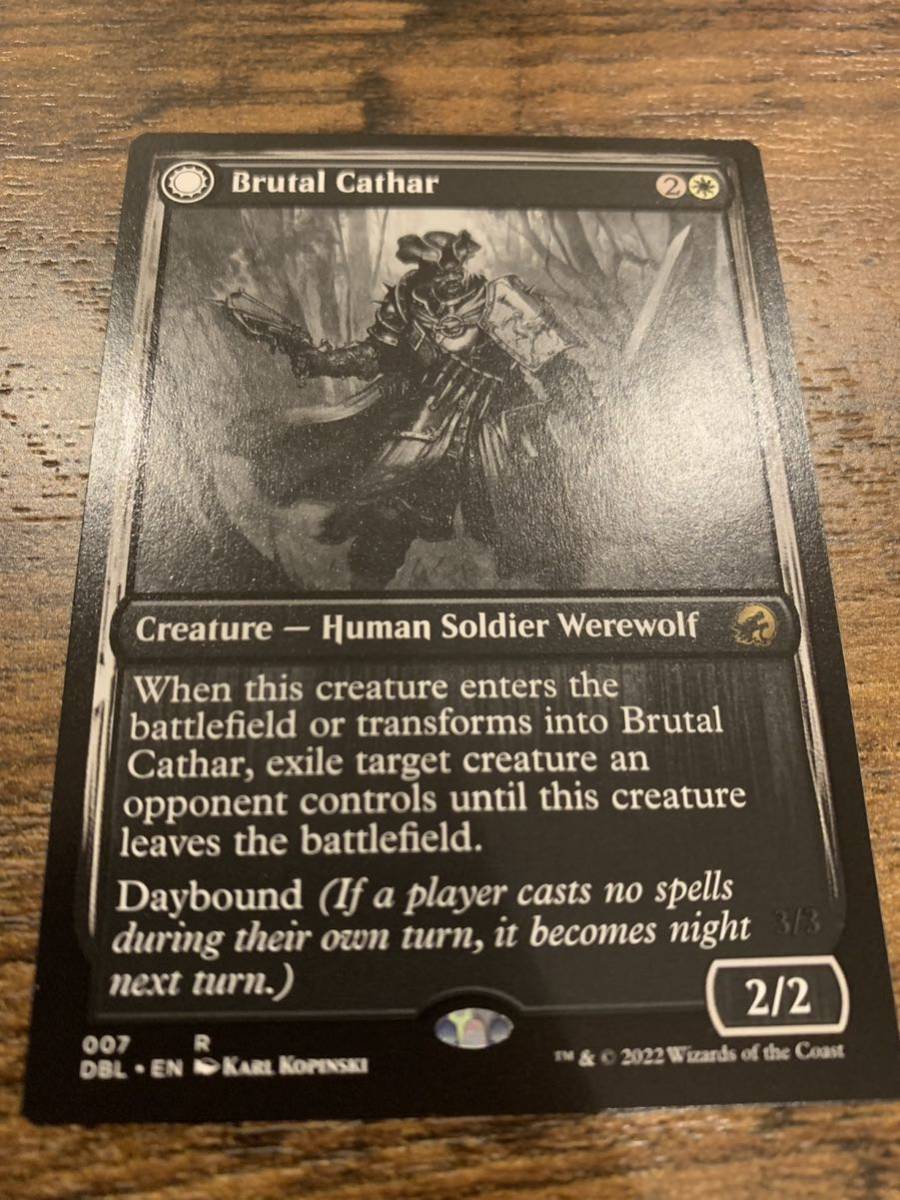 MTG イニストラード:真夜中の狩りMID《粗暴な聖戦士/Brutal Cathar》英語 DBL版1枚になります。