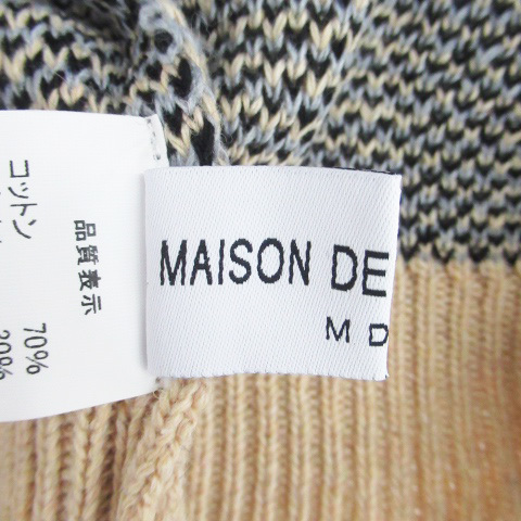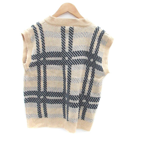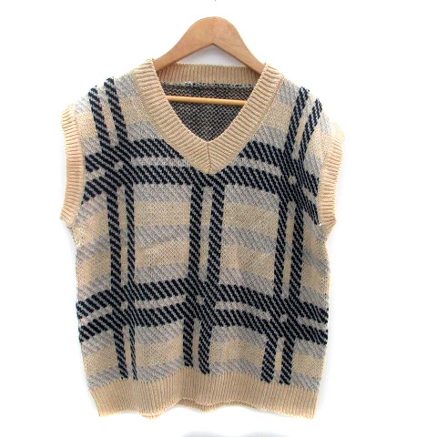 メゾンドテレーズ MAISON DE THERESE ニットベスト Vネック プルオーバー チェック柄 ベージュ 黒 ブラック /HO7 レディース