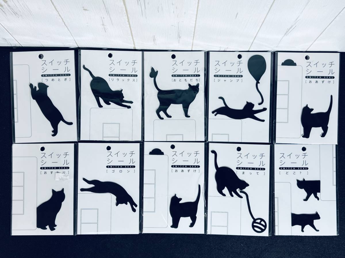 可愛い 黒猫 【スイッチシール 10枚セット】 ネコカフェ スイッチ用 コンセント用 オシャレ 壁シール スィッチ周り 装飾