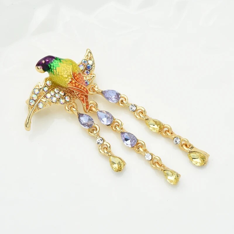 □揺れる♪鳥ブローチ☆★ピンブローチ♪☆パール♪ラインストーン★鳥☆動物☆プレゼントに♪◆新品未使用品◇送料無料◇