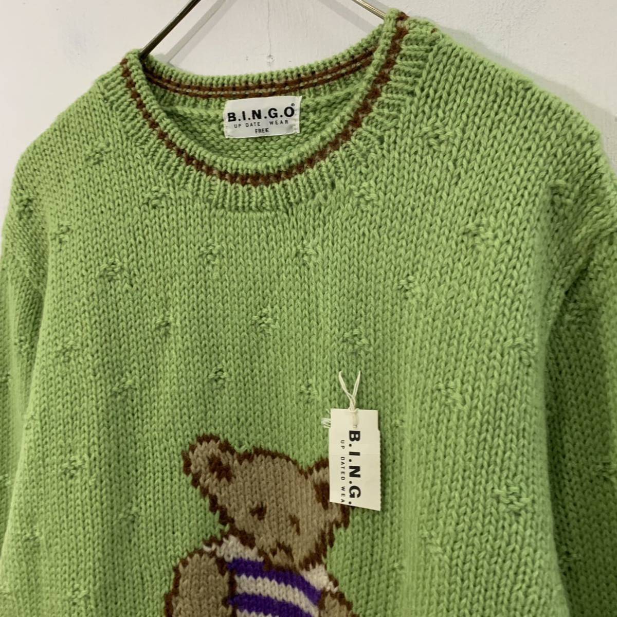新品未使用タグ付き デッドストック ニットセーター プルオーバー 熊 クマ テディベア ウールニット B.I.N.G.O. 上質【送料一律/同梱可能】の出品です。