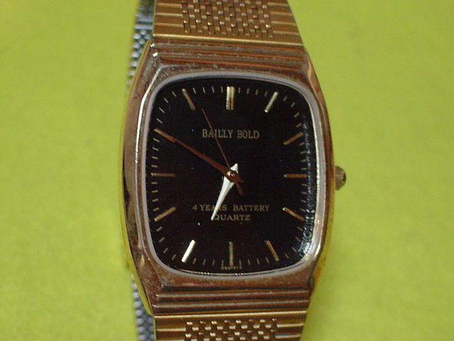 珍品 BAILLY BOLD 腕時計 角型 ブラック&ゴールド