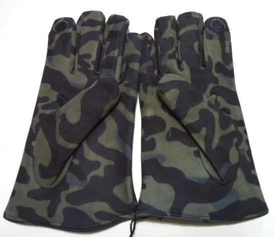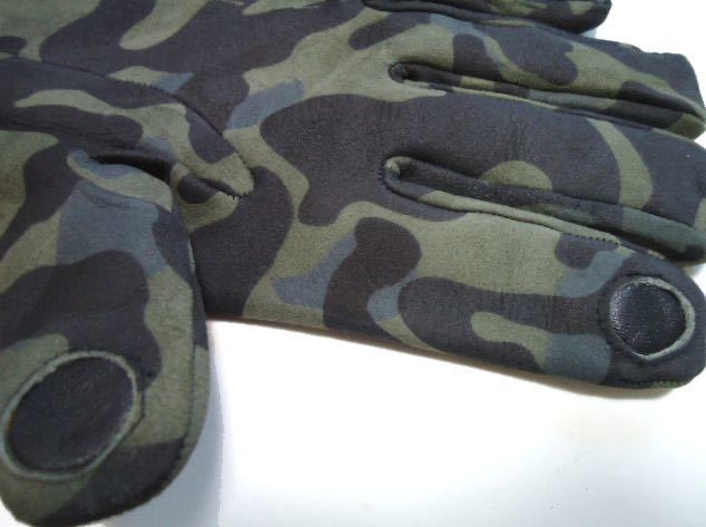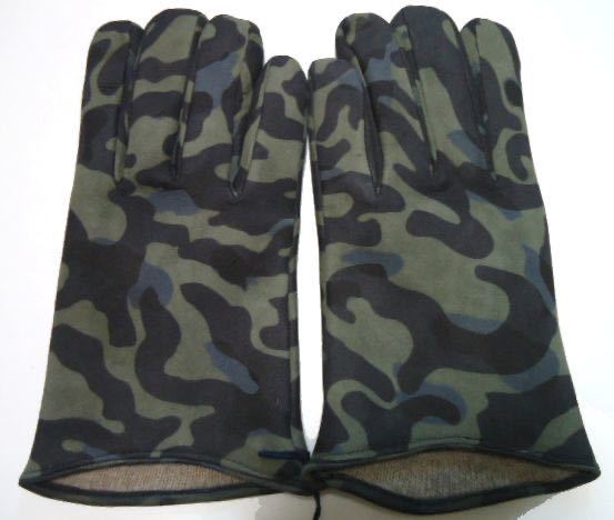 珍しいカムフラージュのプリントされたレザーを使用した、腕時計の見やすい少しだけショートでシャープな形の革手袋です。