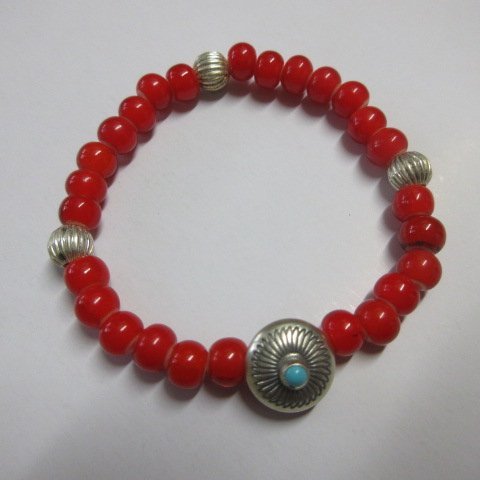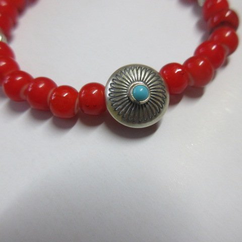 当オリジナルのブレスレットです アメリカインディアンのシルバーコンチョ ホワイトハートの赤ビーズを使いました。 他のブレスレットとの重ね付けにいかがでしょうか! 赤ビーズの径6mm前後 コンチョの径11mmくらい 銀玉はシルバー925のメッキです(シルバープレート) サイズはレディースの小さいサイズ 内径45mm 手首回り14cm前後の方にオススメです。 糸は収縮性のあるゴム使用 傷や汚れのあるビーズもあります 写真は使いまわしです どうぞよろしくお願いいたします。