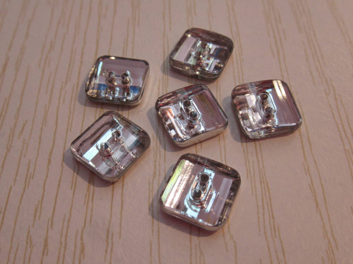 手芸 和洋裁用釦 ビジューボタン 透明 クリア クリスタル四角ボタン(15mm7個入り)ys717-to