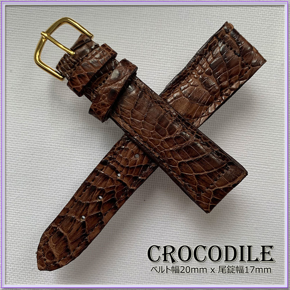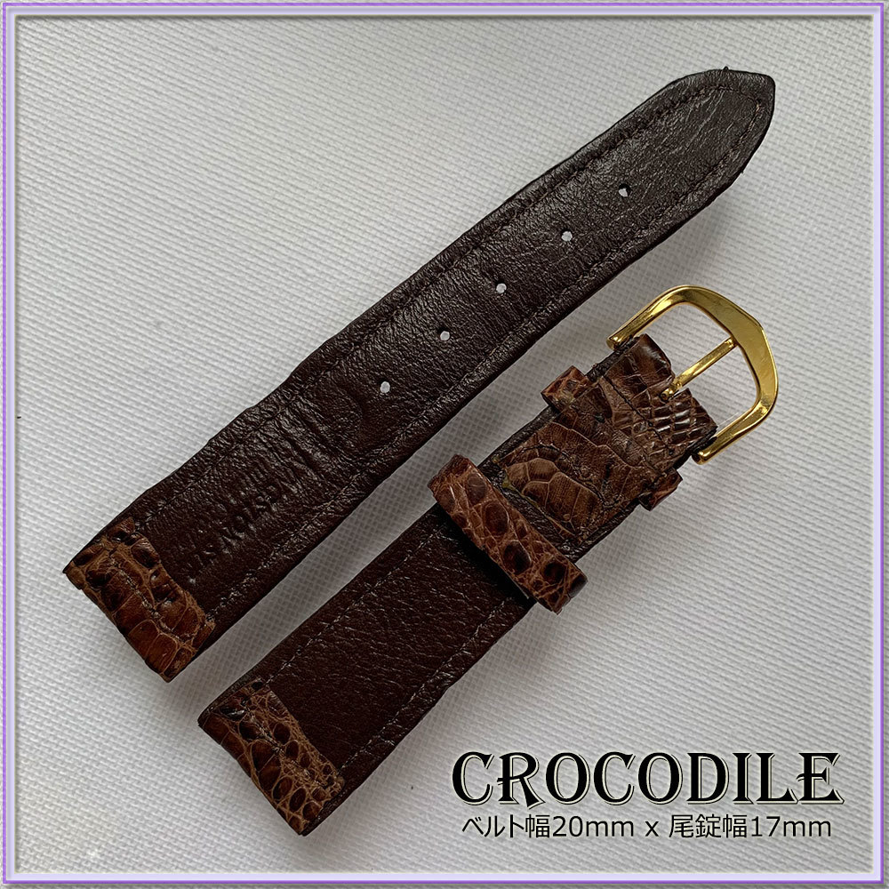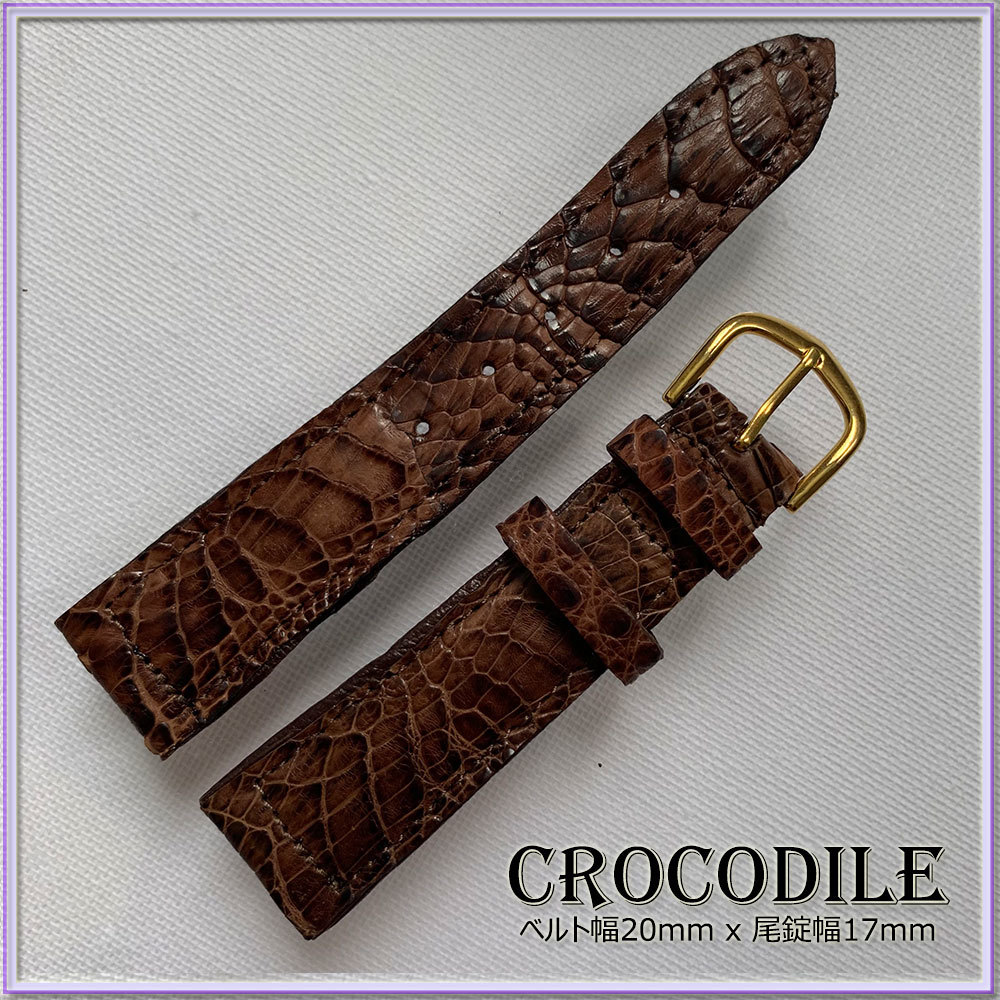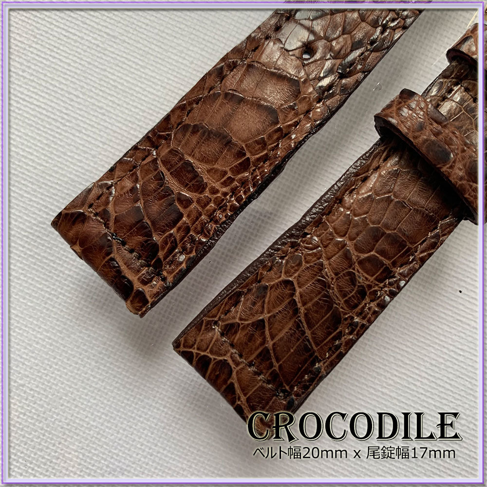 SALE!20mm 本革 クロコダイル 時計ベルト ITALIAN BROWN イタリアンブラウン 1点物 ヴィンテージ VINTAGE HANDMADE ワニ革 職人技 限定