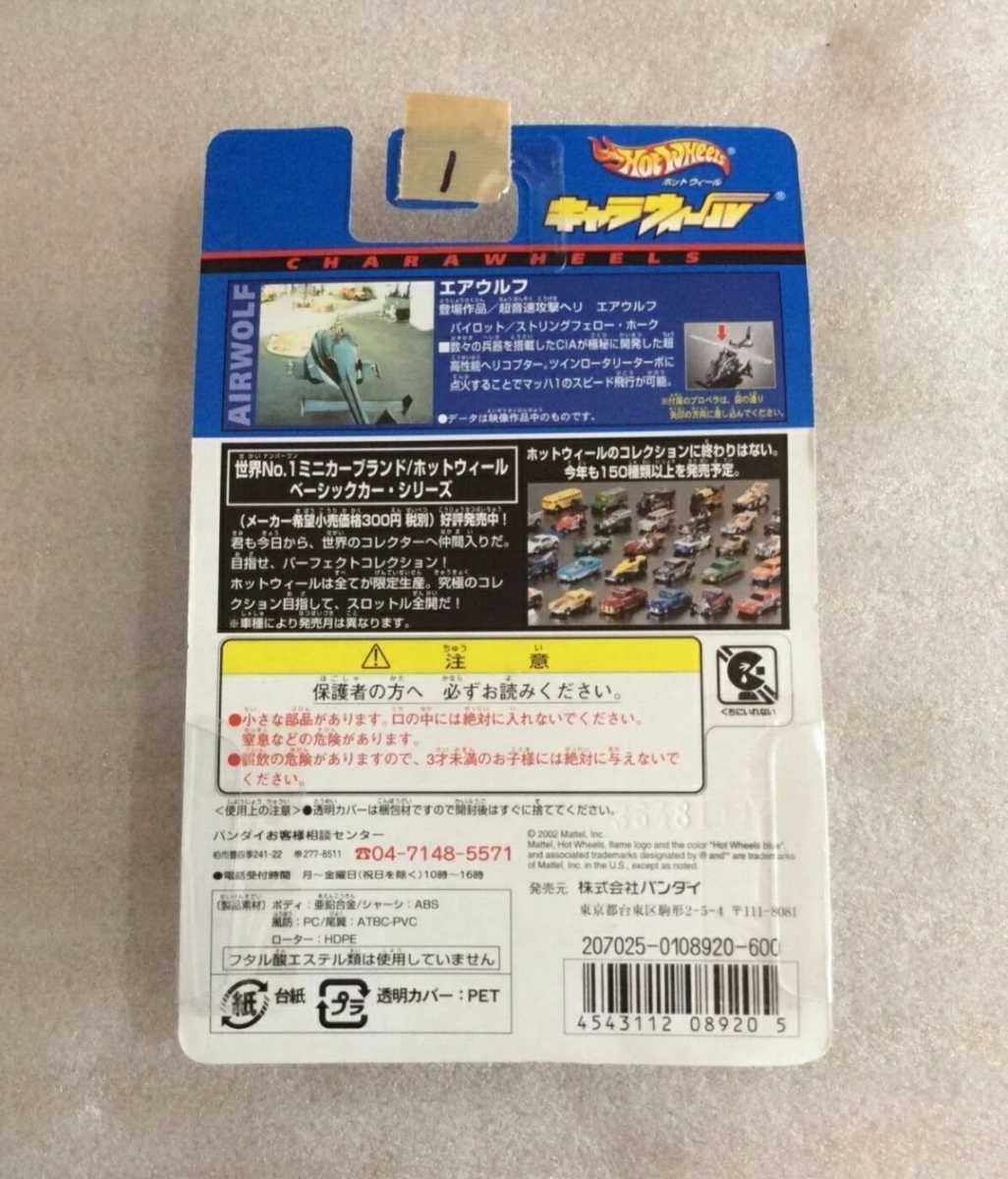 Hot Wheels ホットウィール / バンダイ キャラウィール 超音速攻撃ヘリ エアウルフ